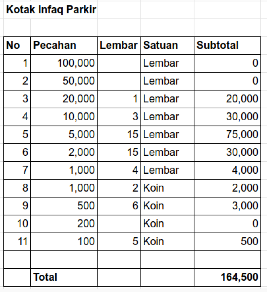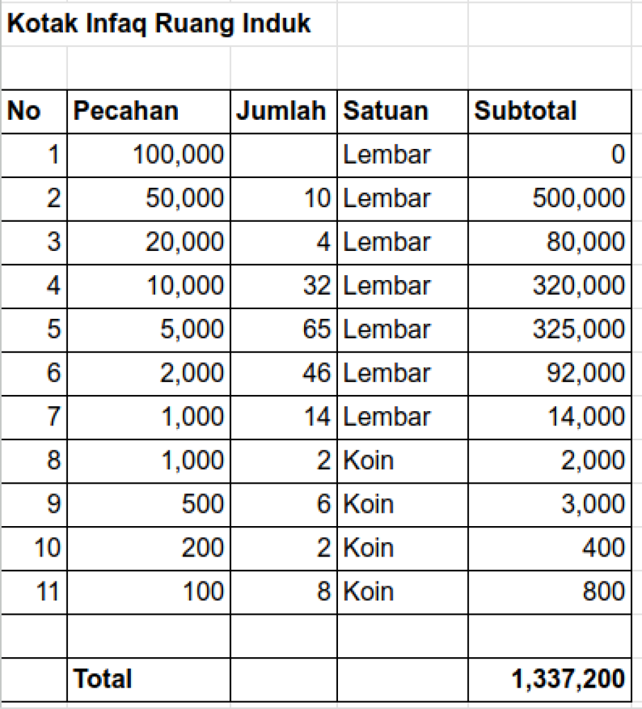Kotak Infaq Hari Jumat (Ruang Induk dan Parkir)