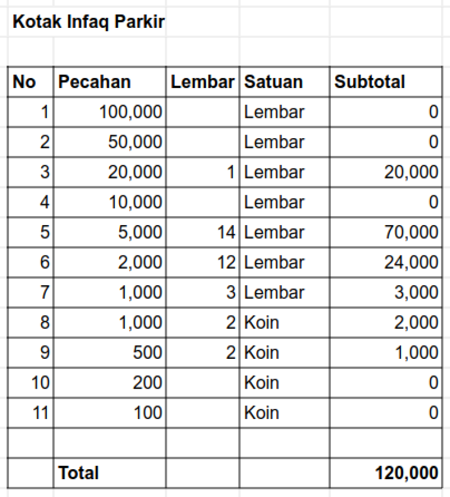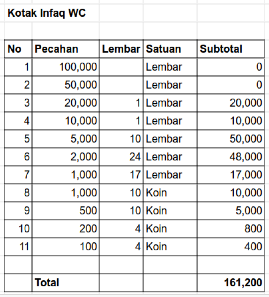 Kotak Infaq Hari Jumat (Ruang Induk dan Parkir)
