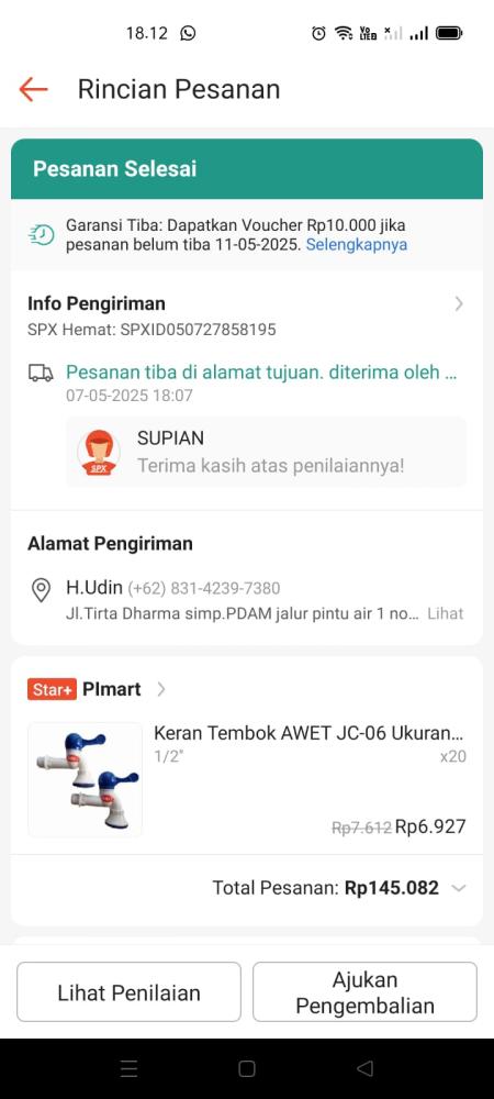 Pembelian Keran Tembok JC-06 untuk tempat Wudhu
