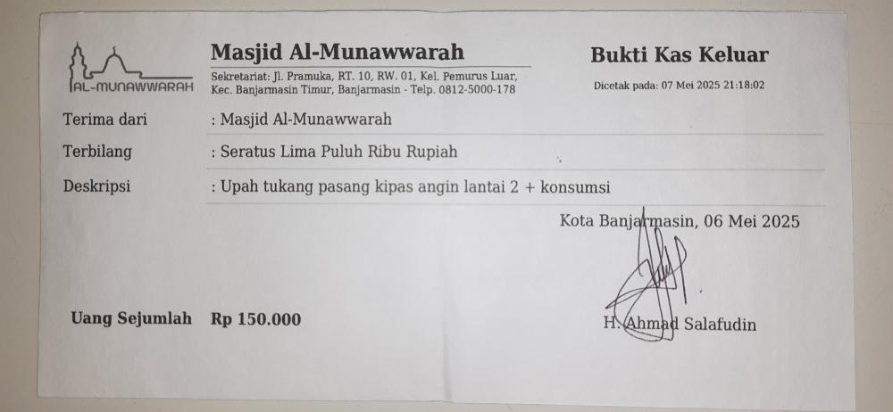 Biaya Pemeliharaan dan Perlengkapan Masjid
