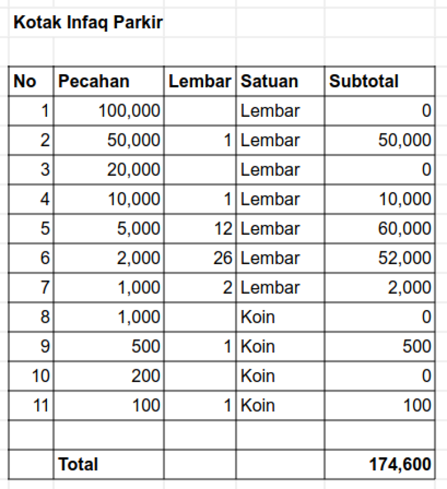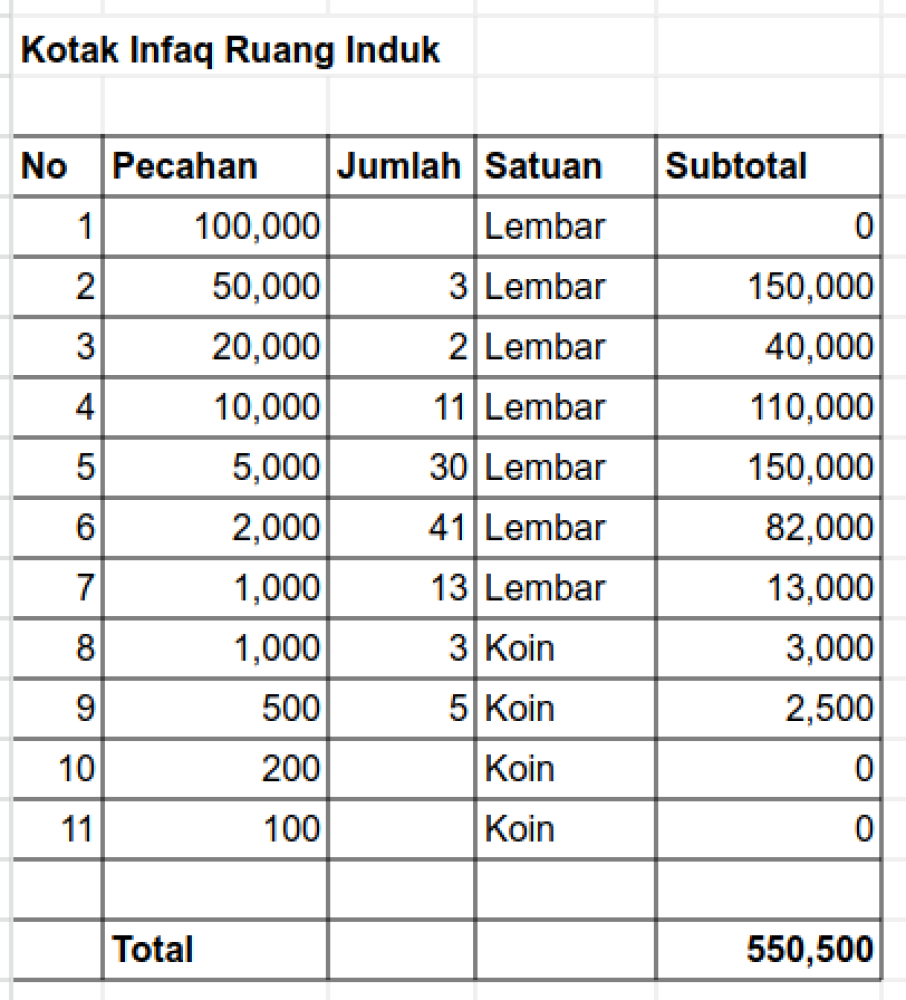 Kotak Infaq Hari Jumat (Ruang Induk dan Parkir)