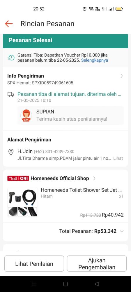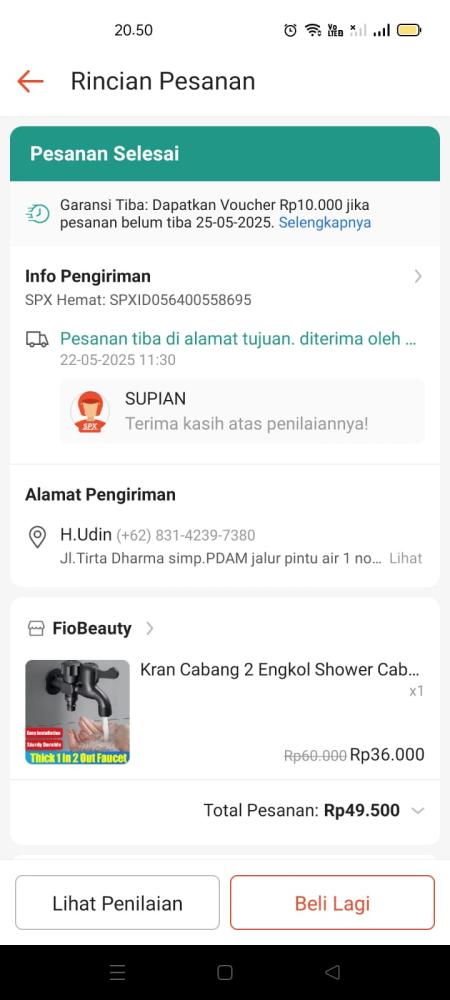 Pembelian Kran Cabang 2 Shower 1 pcs