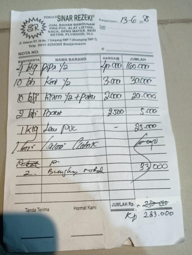 Pembelian Bahan dan Pemasangan Lampu Tempat Wudhu