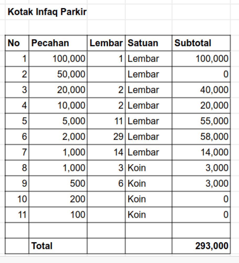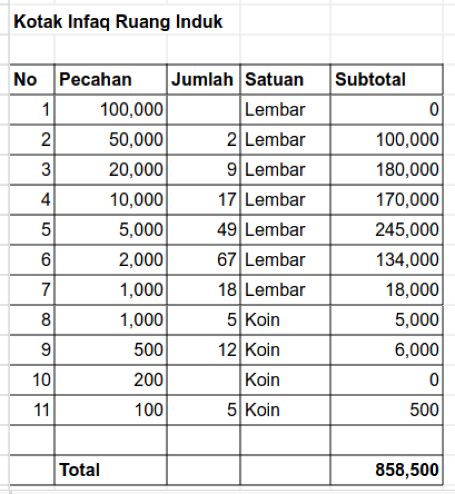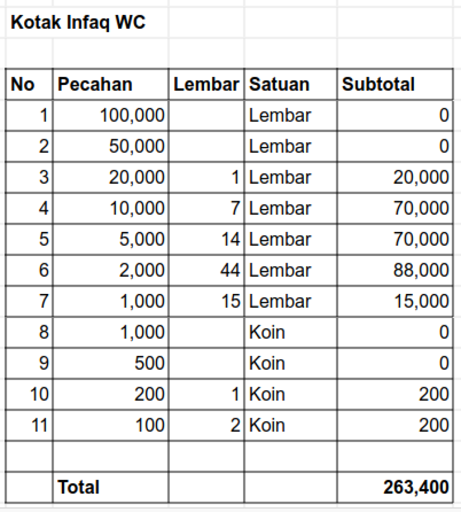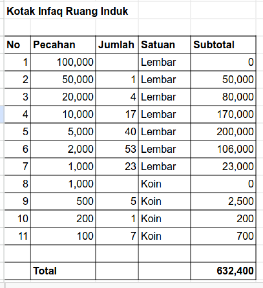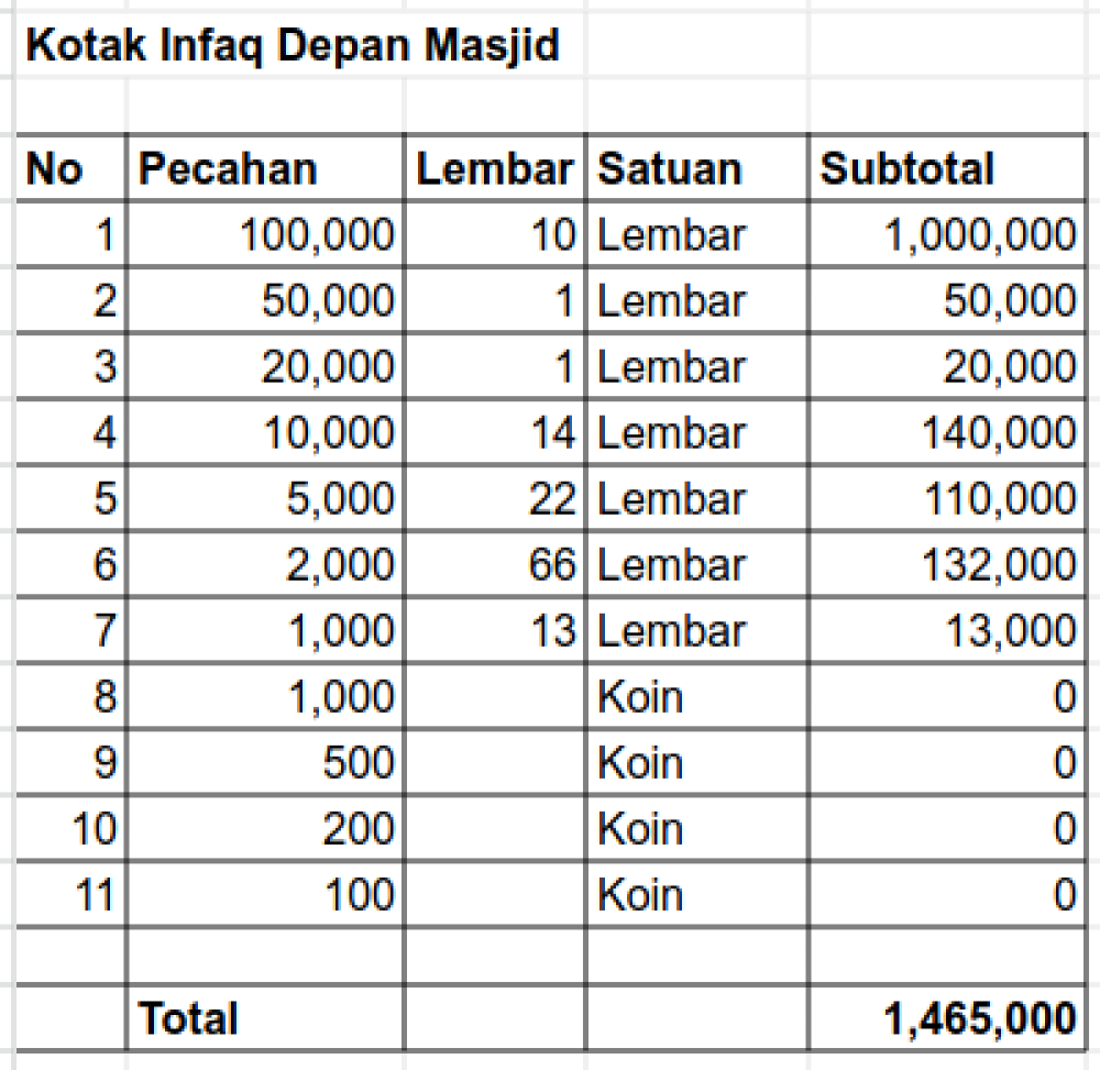 Kotak Infaq Depan Masjid 11 Mei s/d 11 Juni 2025