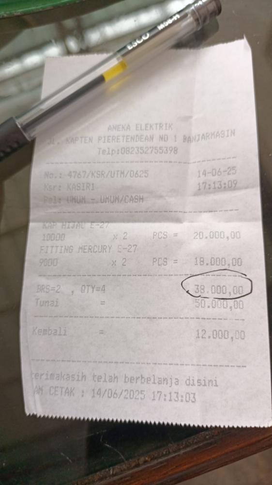Pembelian 2 pasang kap lampu dgn kepala fitting tempat wudhu