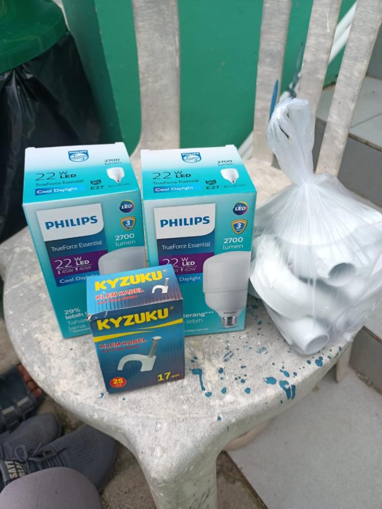 Pembelian Bahan dan Pemasangan Lampu Tempat Wudhu