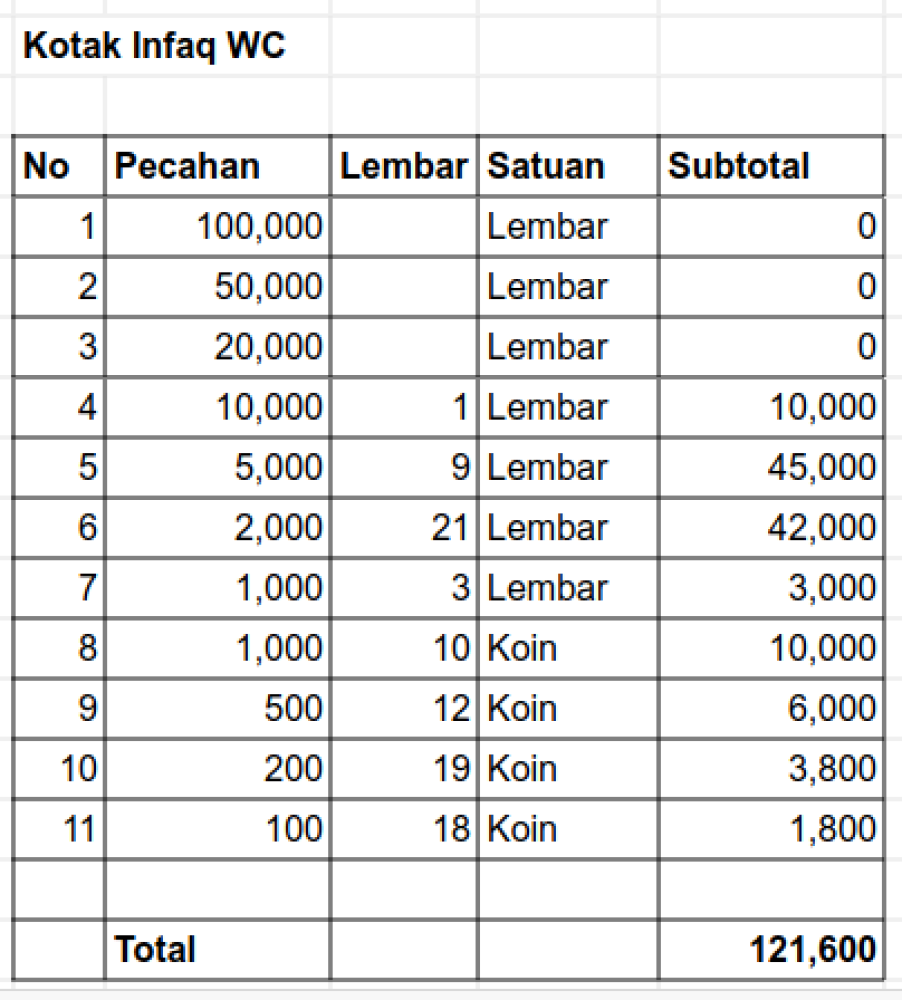 Kotak Infaq Hari Jumat (Ruang Induk dan Parkir)