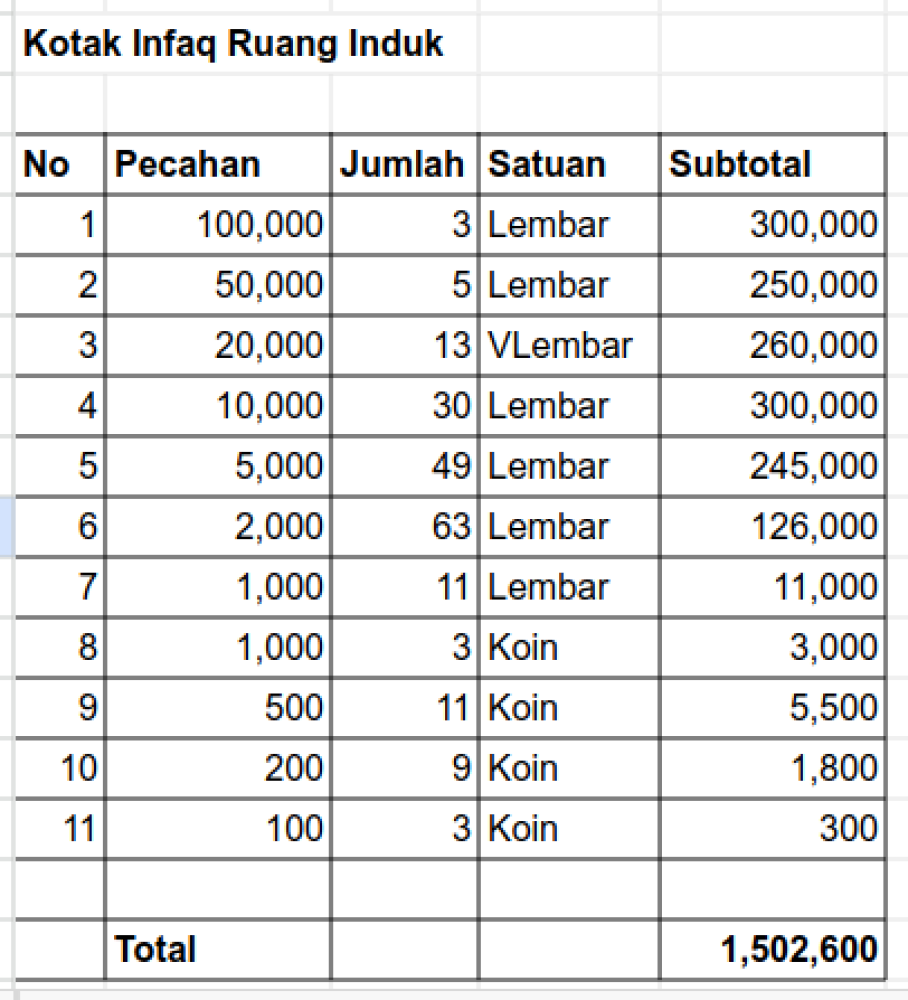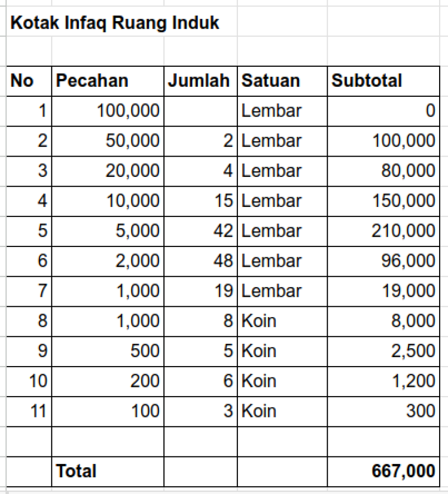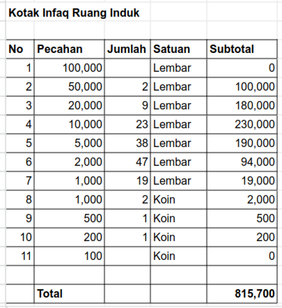 Pemasukan Infaq Hamba Allah