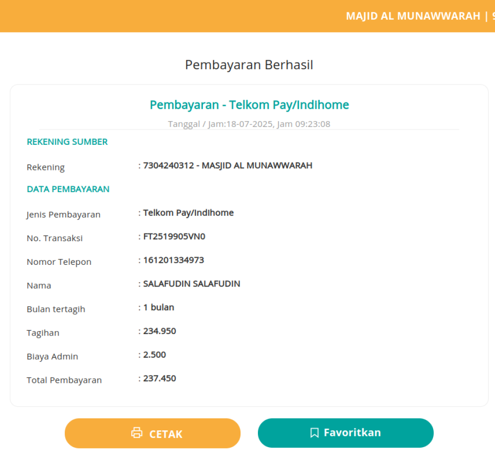 Admin Bank Pembayaran Internet Masjid bulan Juli 2025