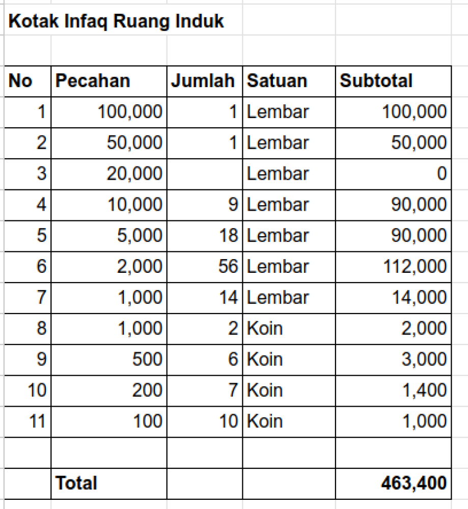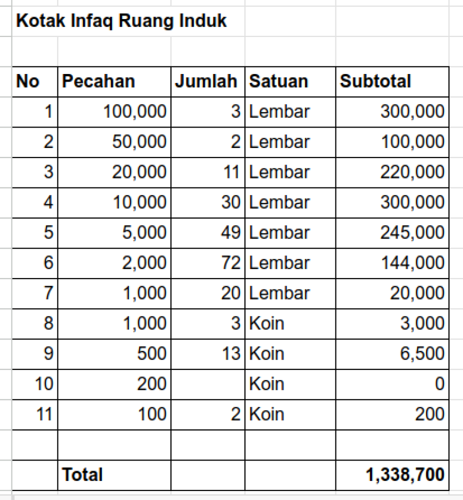 Pemasukan Infaq Hamba Allah