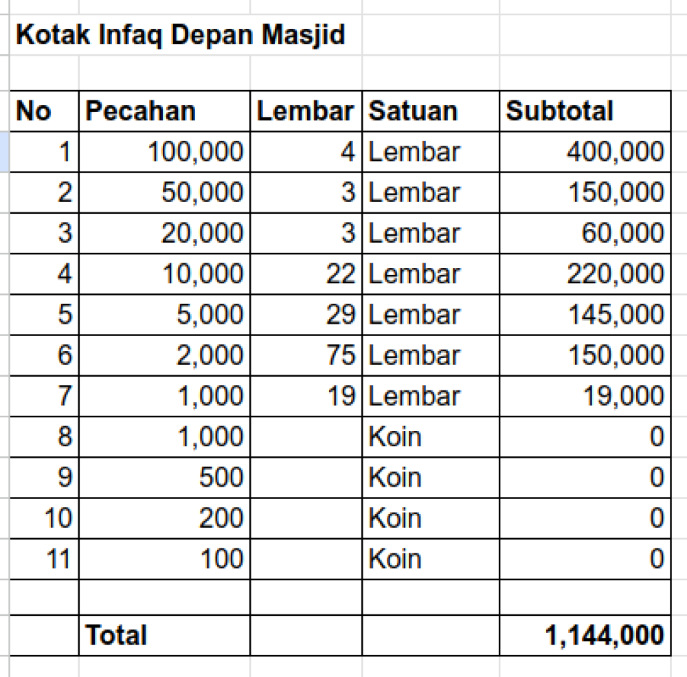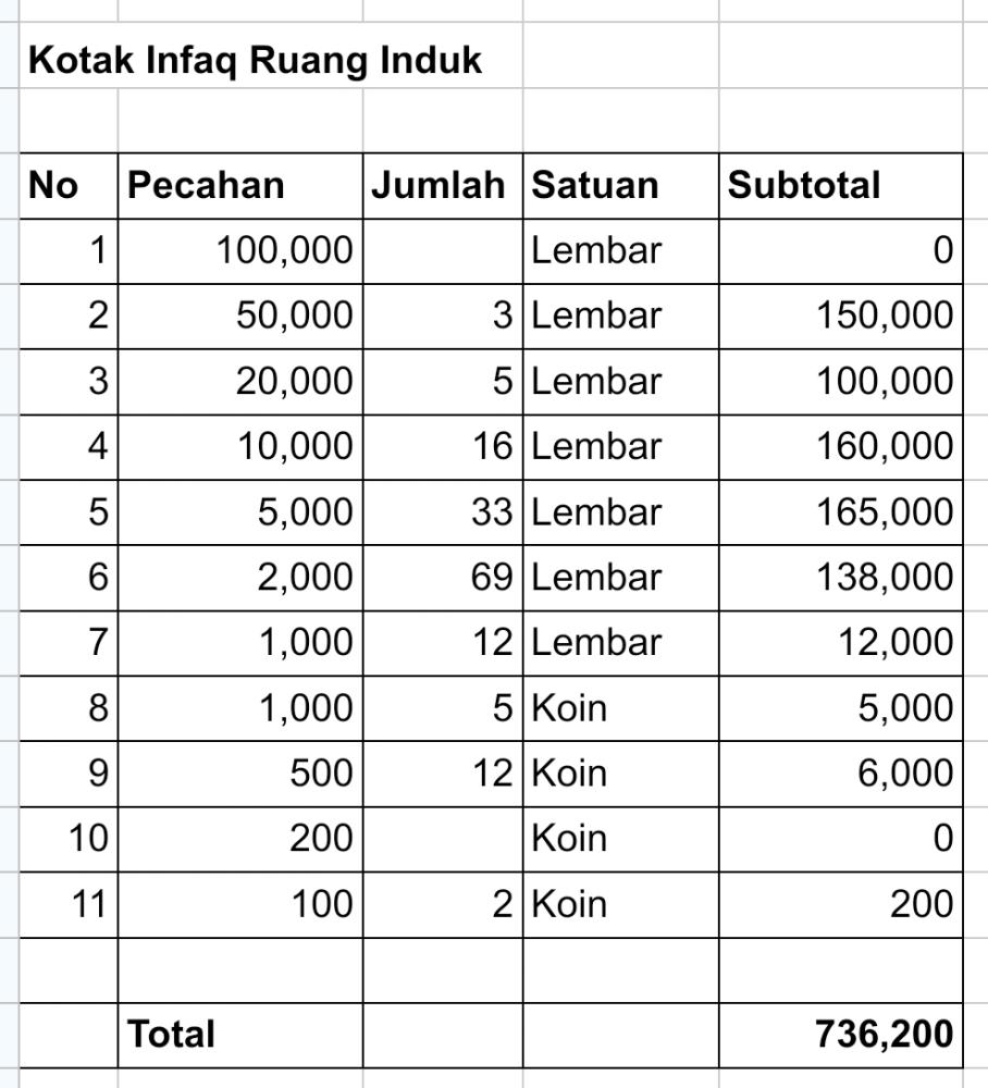 Kotak Infaq Hari Jumat (Ruang Induk dan Parkir)