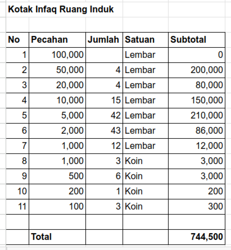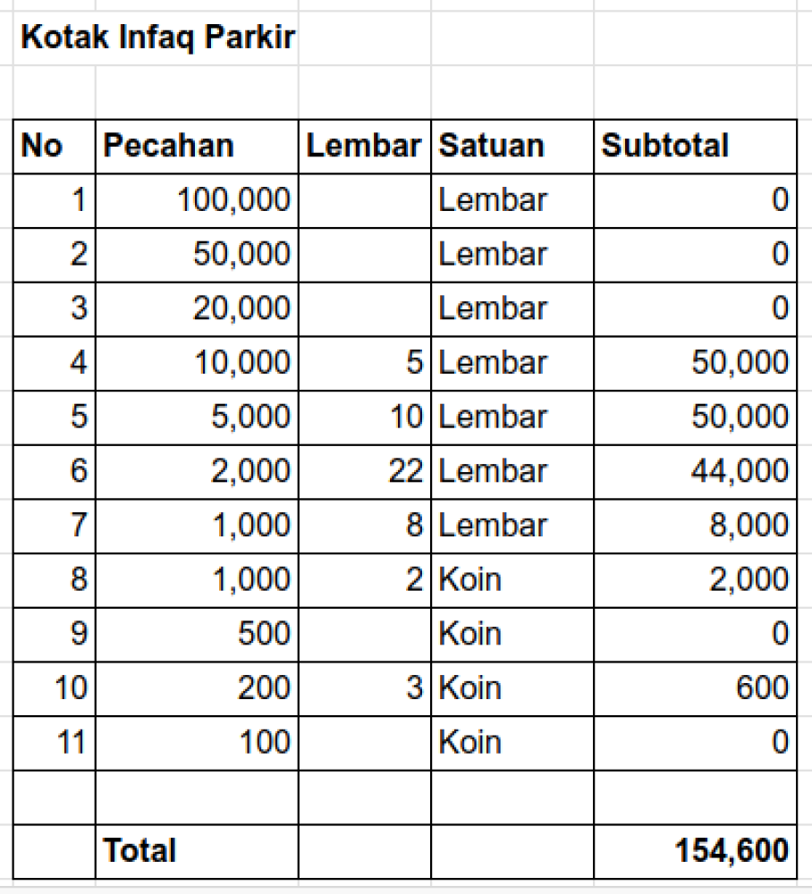 Kotak Infaq Hari Jumat (Ruang Induk dan Parkir)