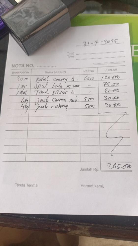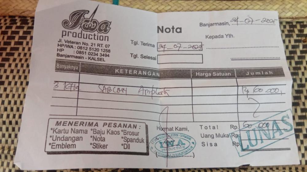 Pembelian 3 Box Amlop untuk Subangan Kegiatan Maulid