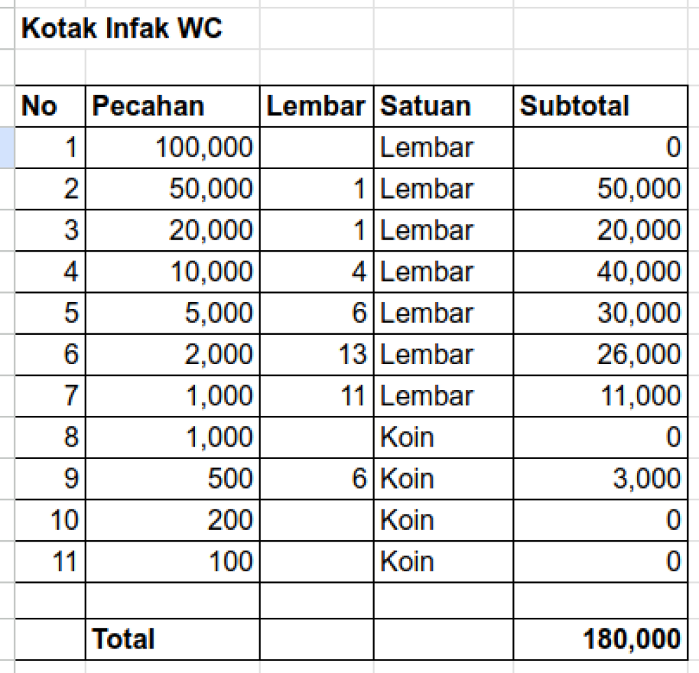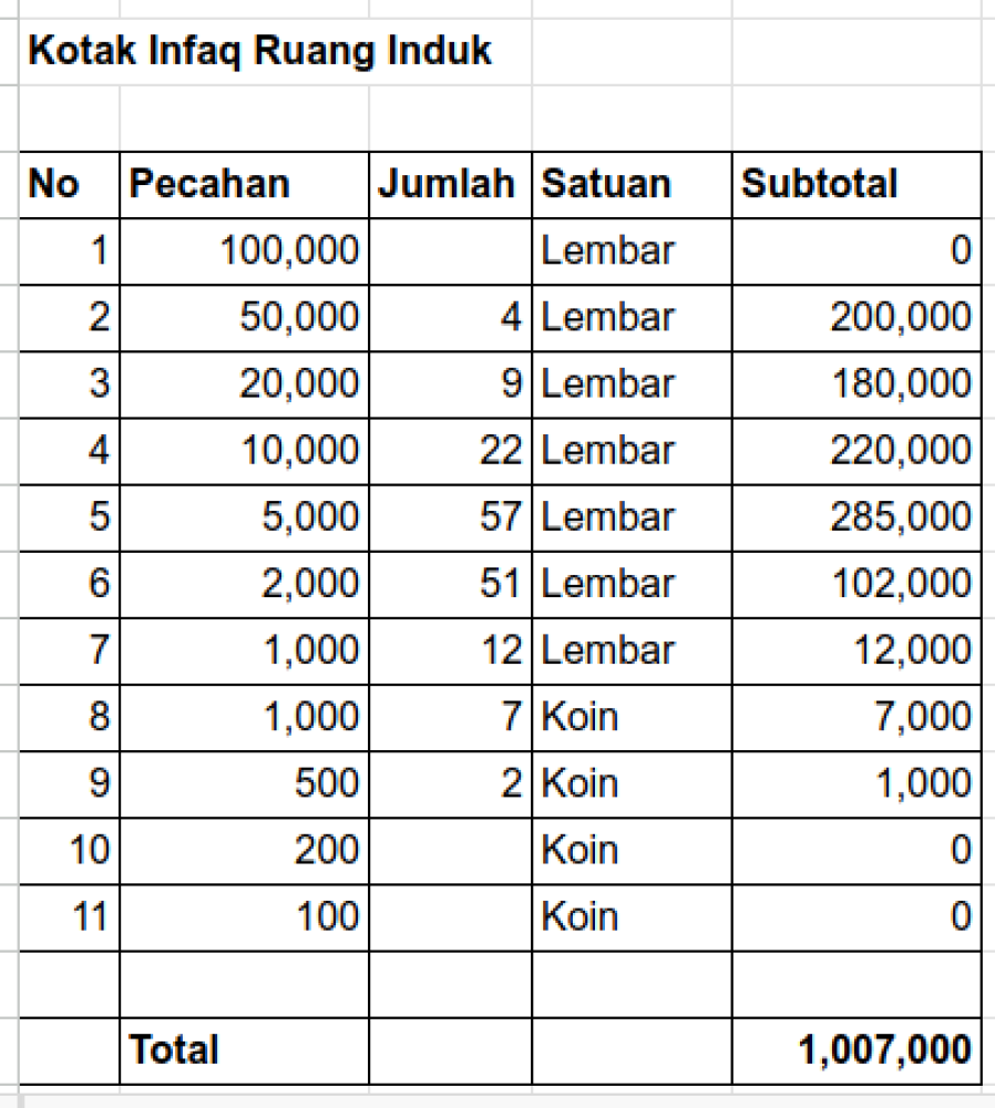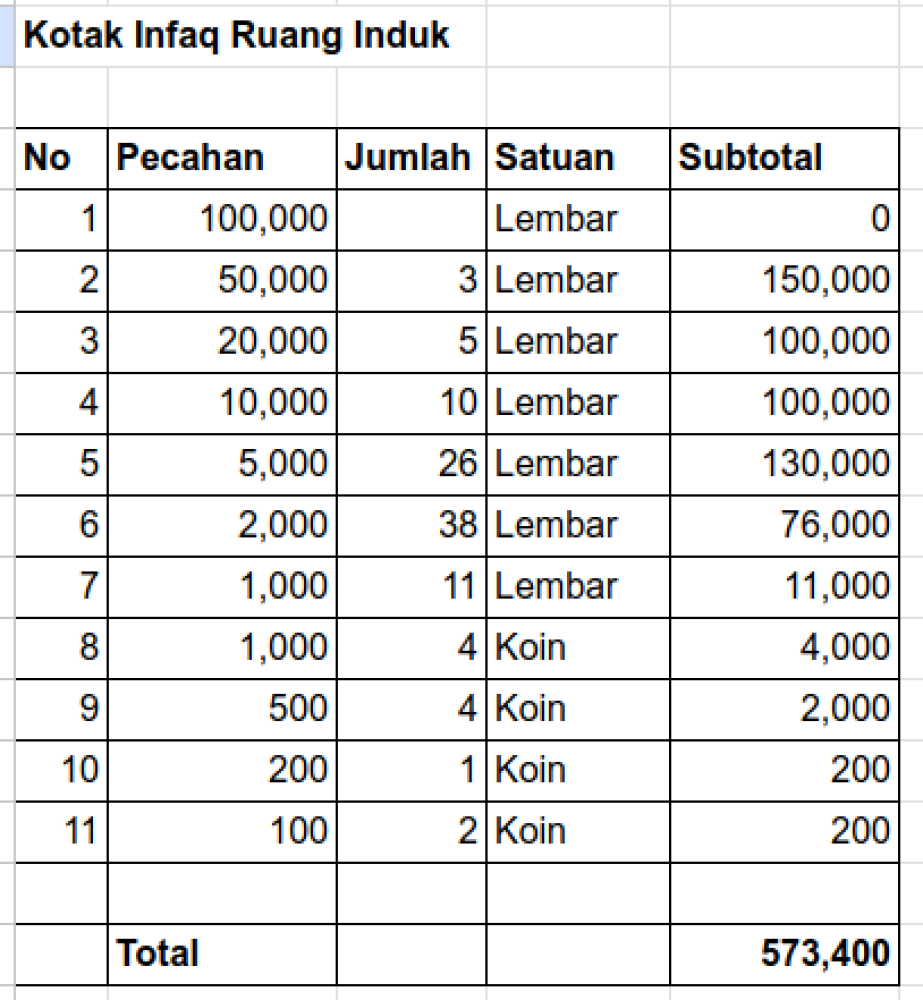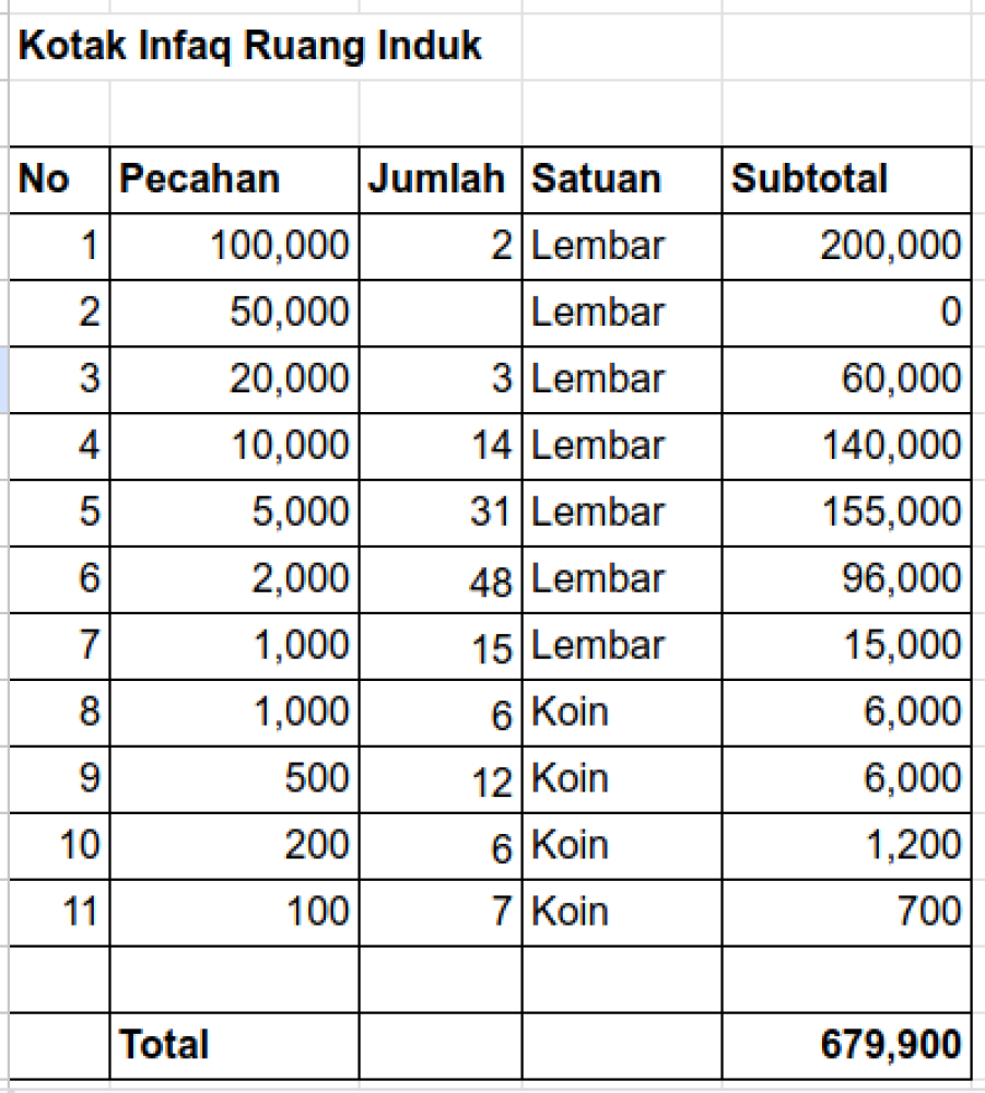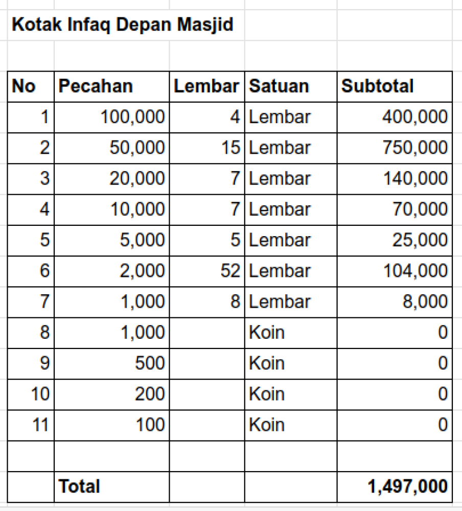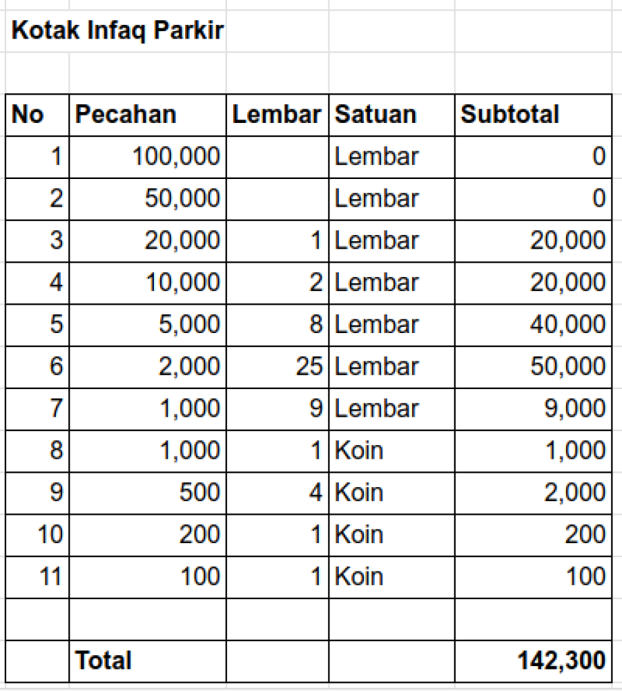 Kotak Infaq Hari Jumat (Ruang Induk dan Parkir)