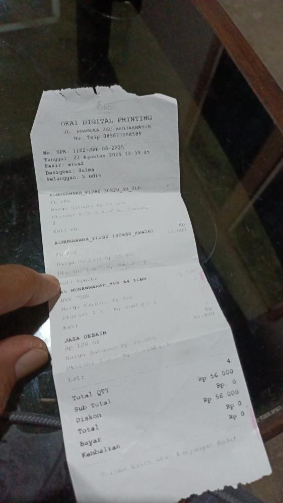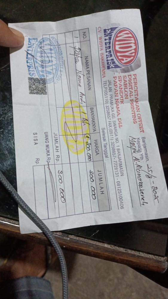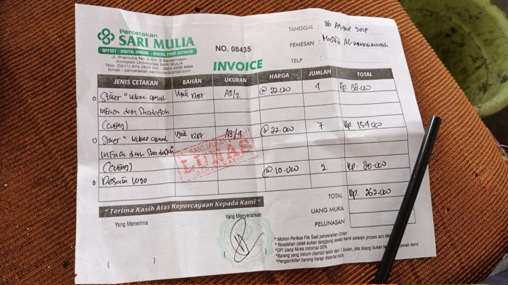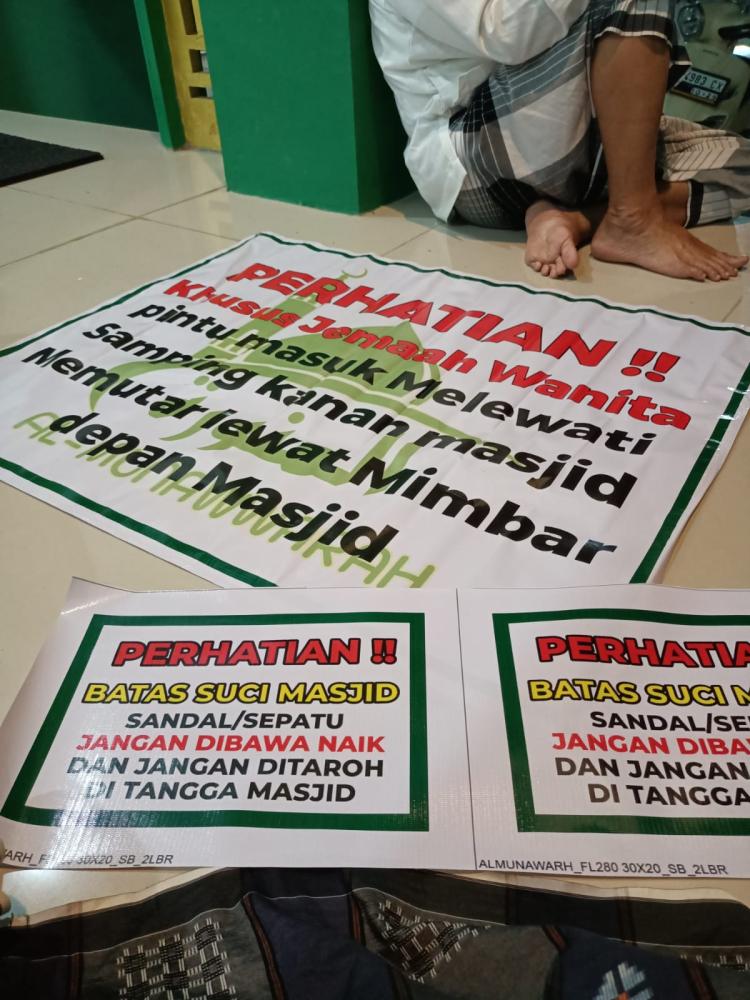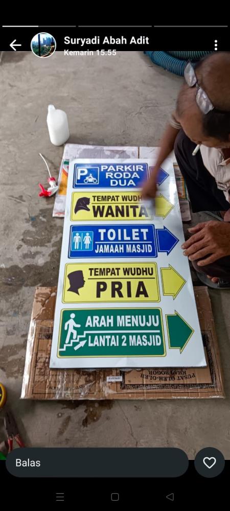 Biaya Cetak 1 buah Papan Penunjuk Arah tempat wudhu dan tangga lantai 2