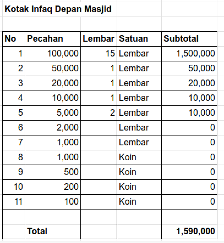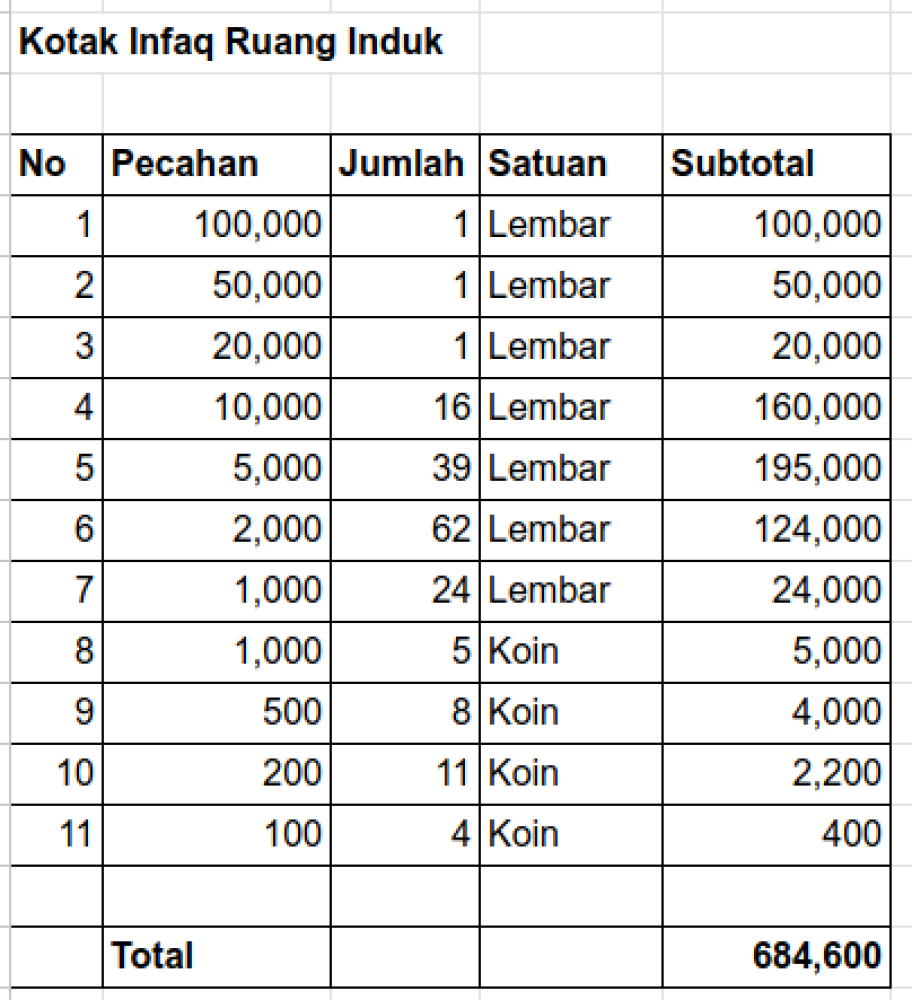 Kotak Infaq Hari Jumat (Ruang Induk dan Parkir)