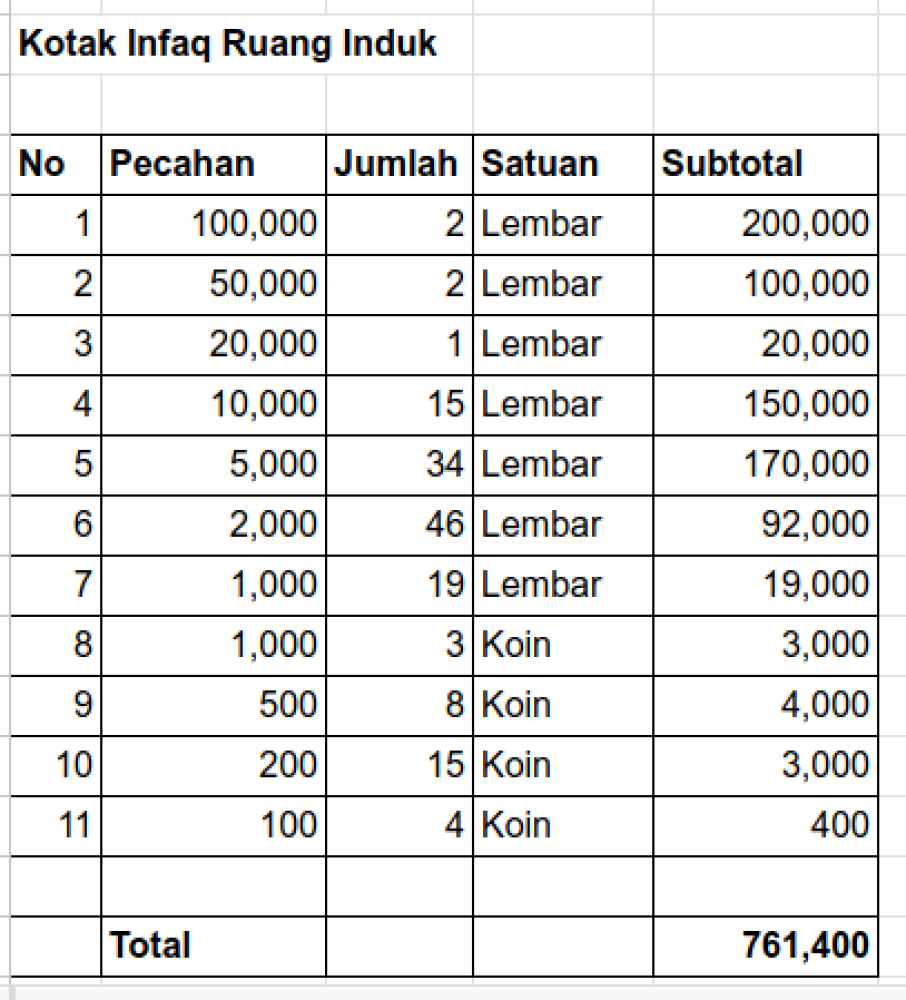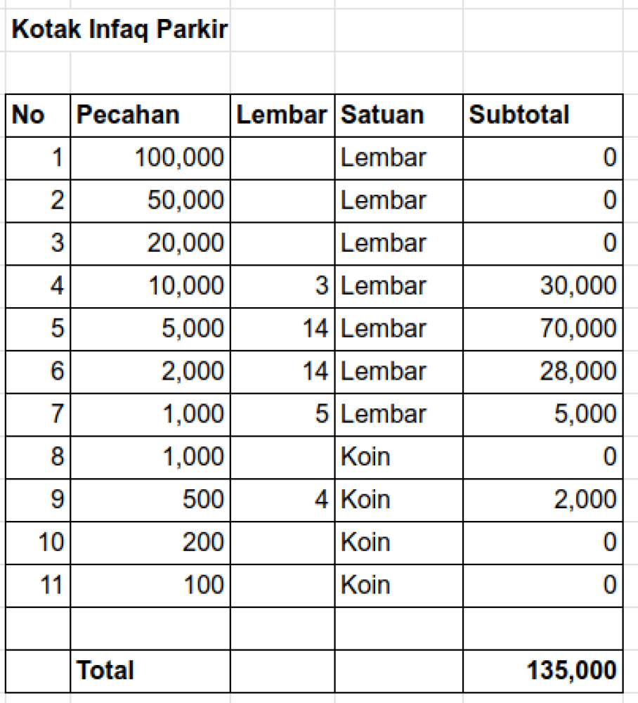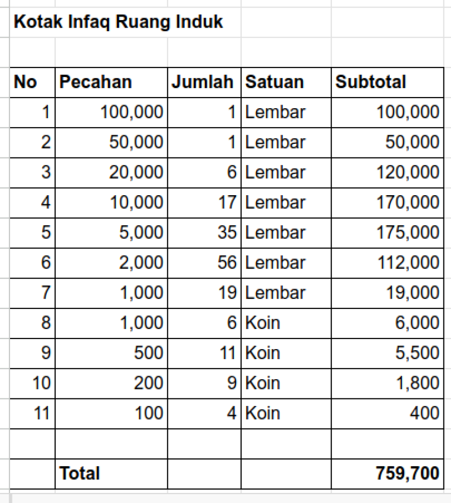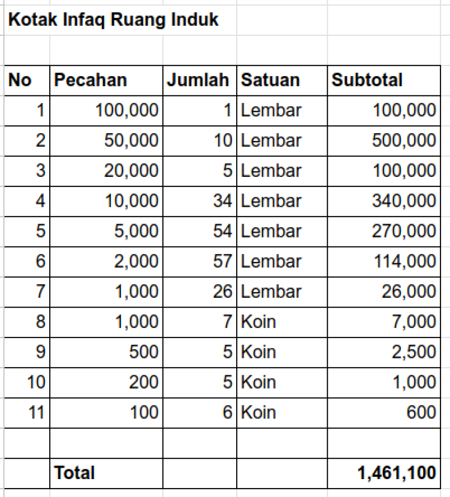 Kotak Infaq Hari Jumat (Ruang Induk dan Parkir)