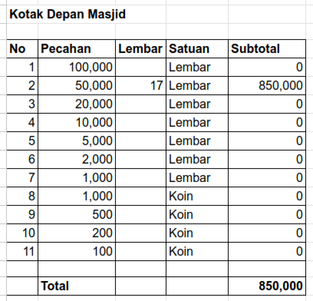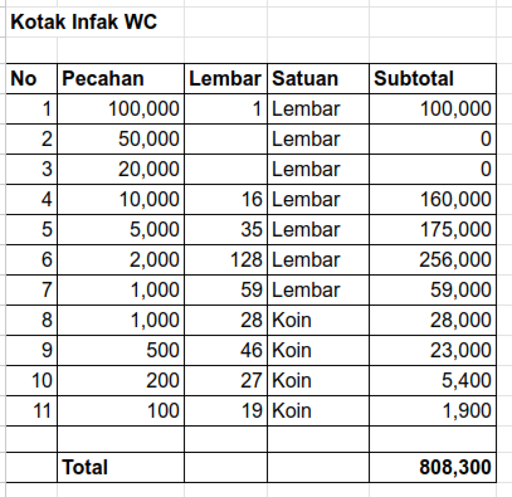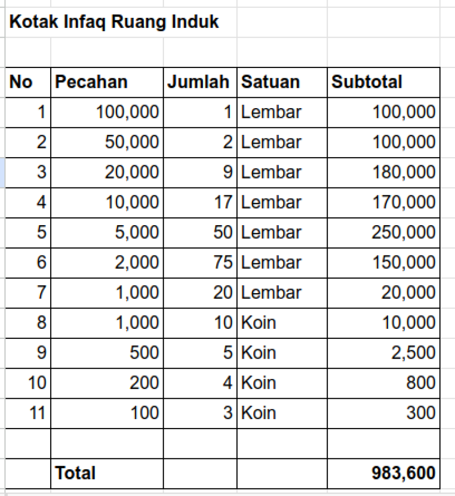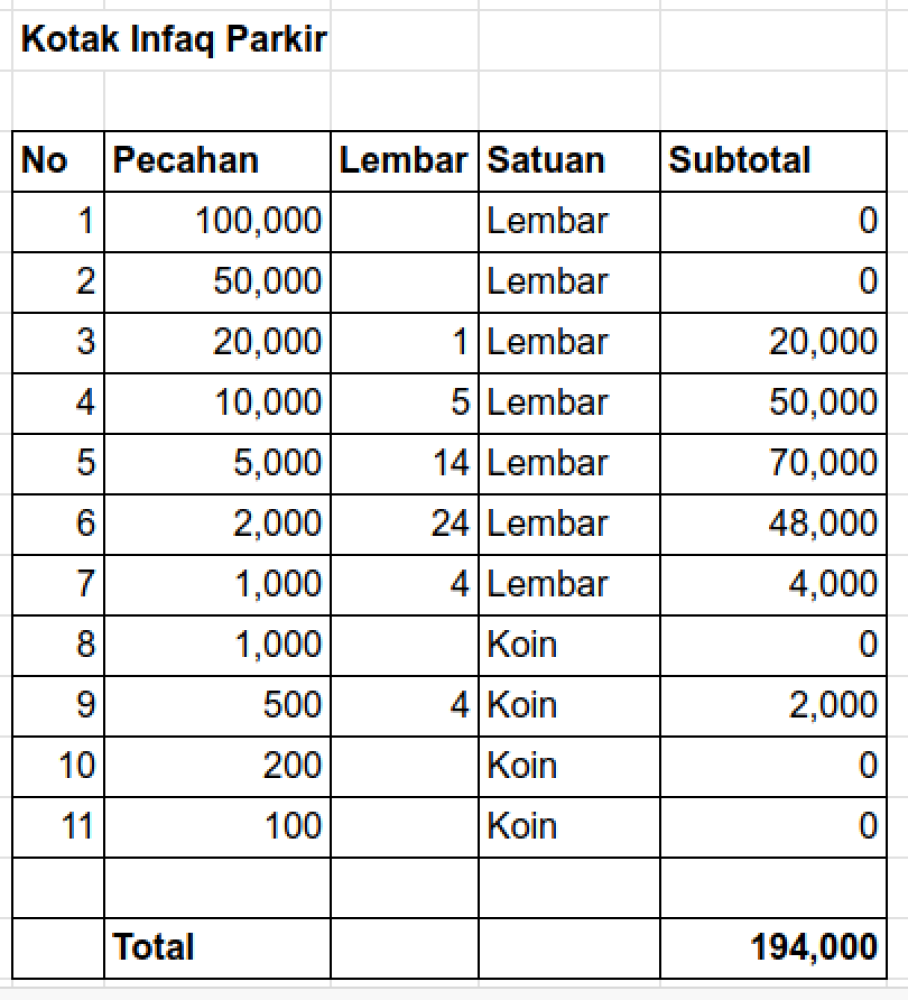 Kotak Infaq Hari Jumat (Ruang Induk dan Parkir)