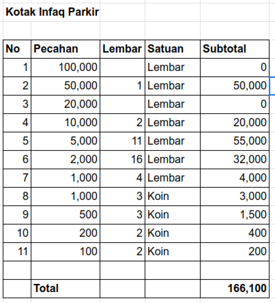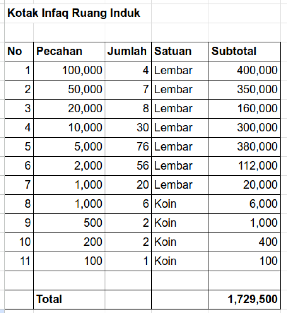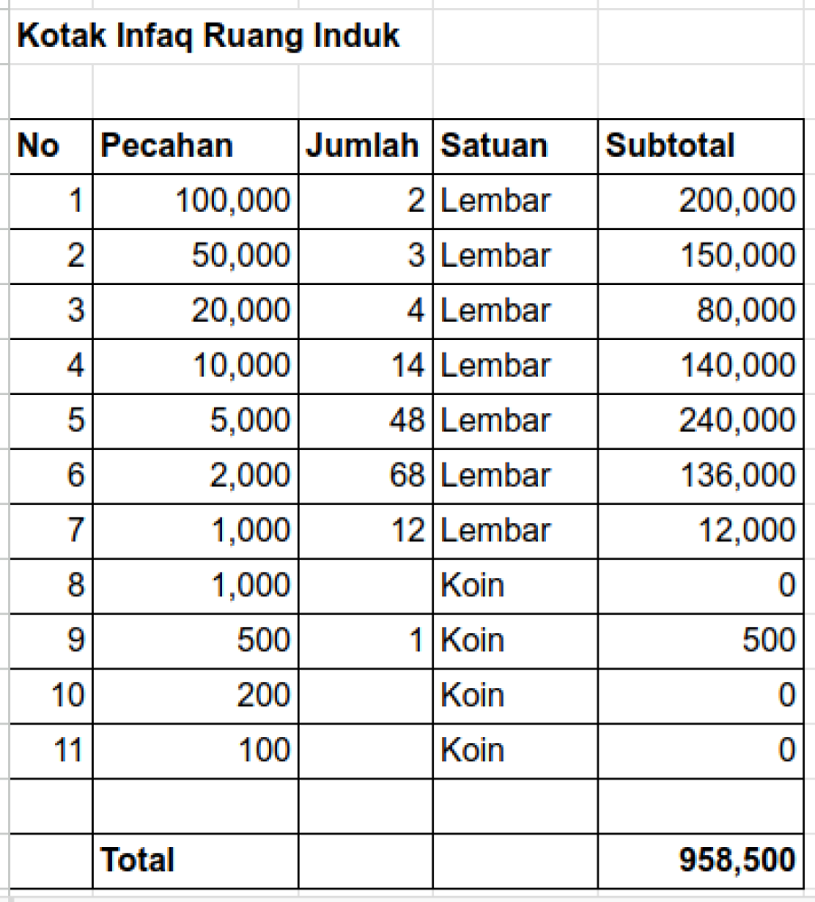 Kotak Infaq Hari Jumat (Ruang Induk dan Parkir)