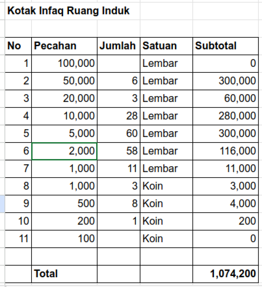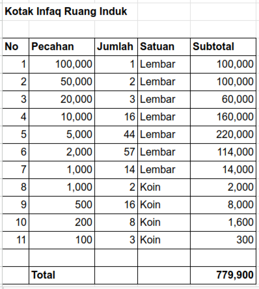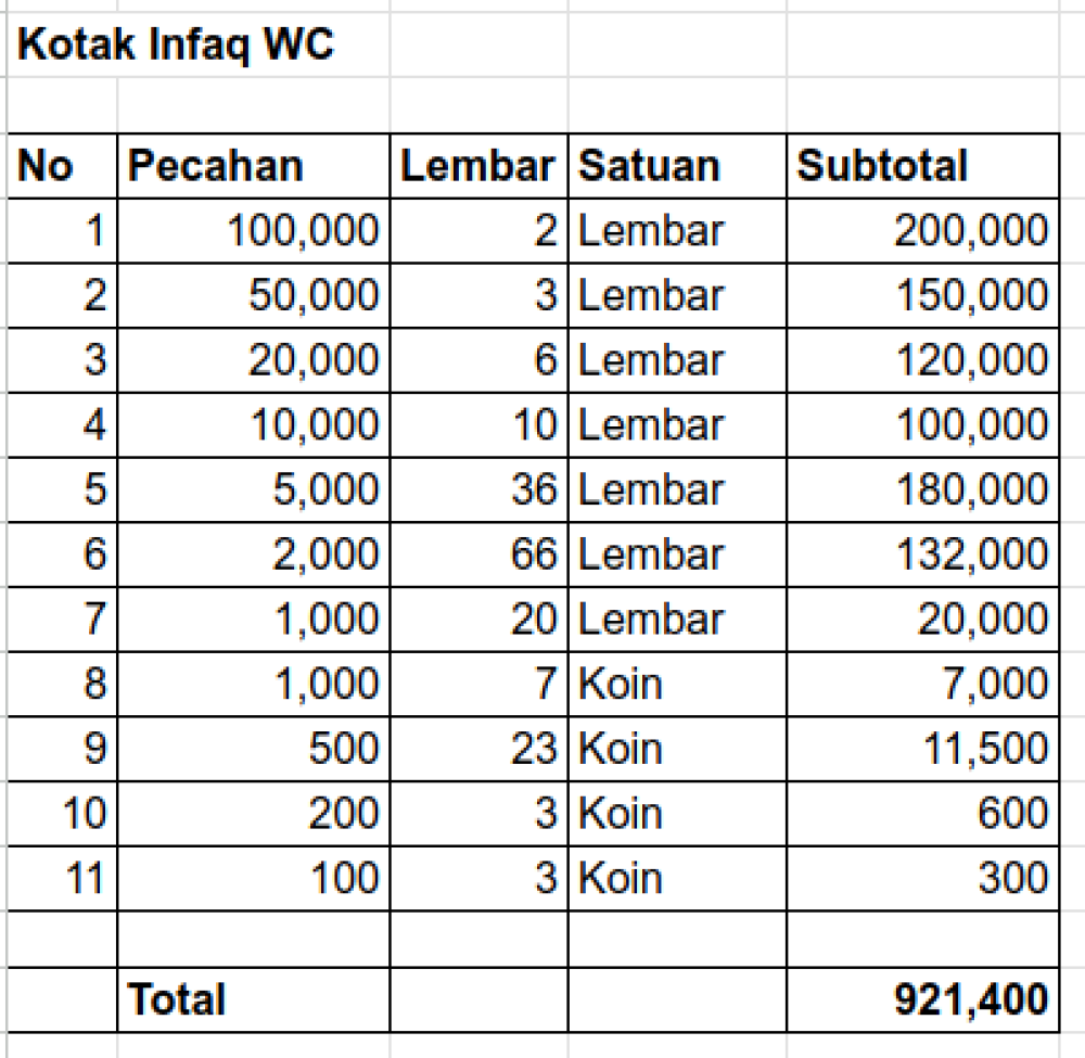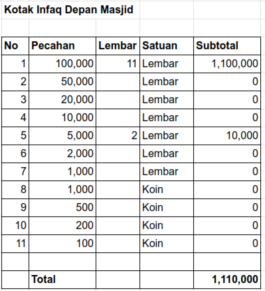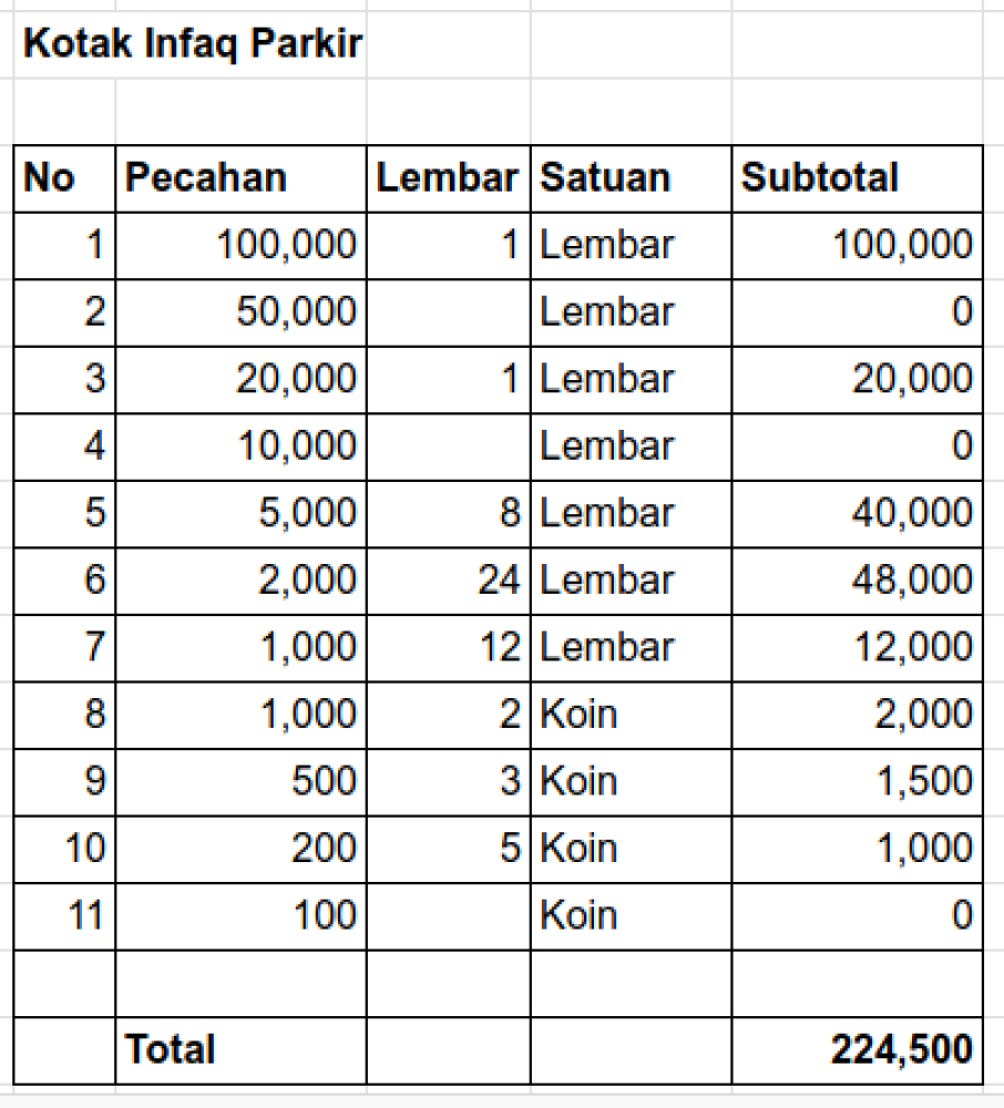 Kotak Infaq Hari Jumat (Ruang Induk dan Parkir)