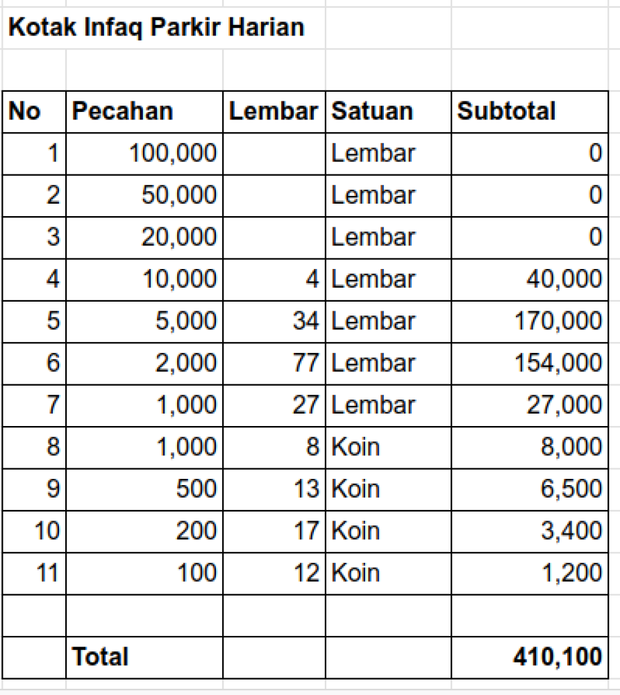 Kotak Infaq Hari Jumat (Ruang Induk dan Parkir)