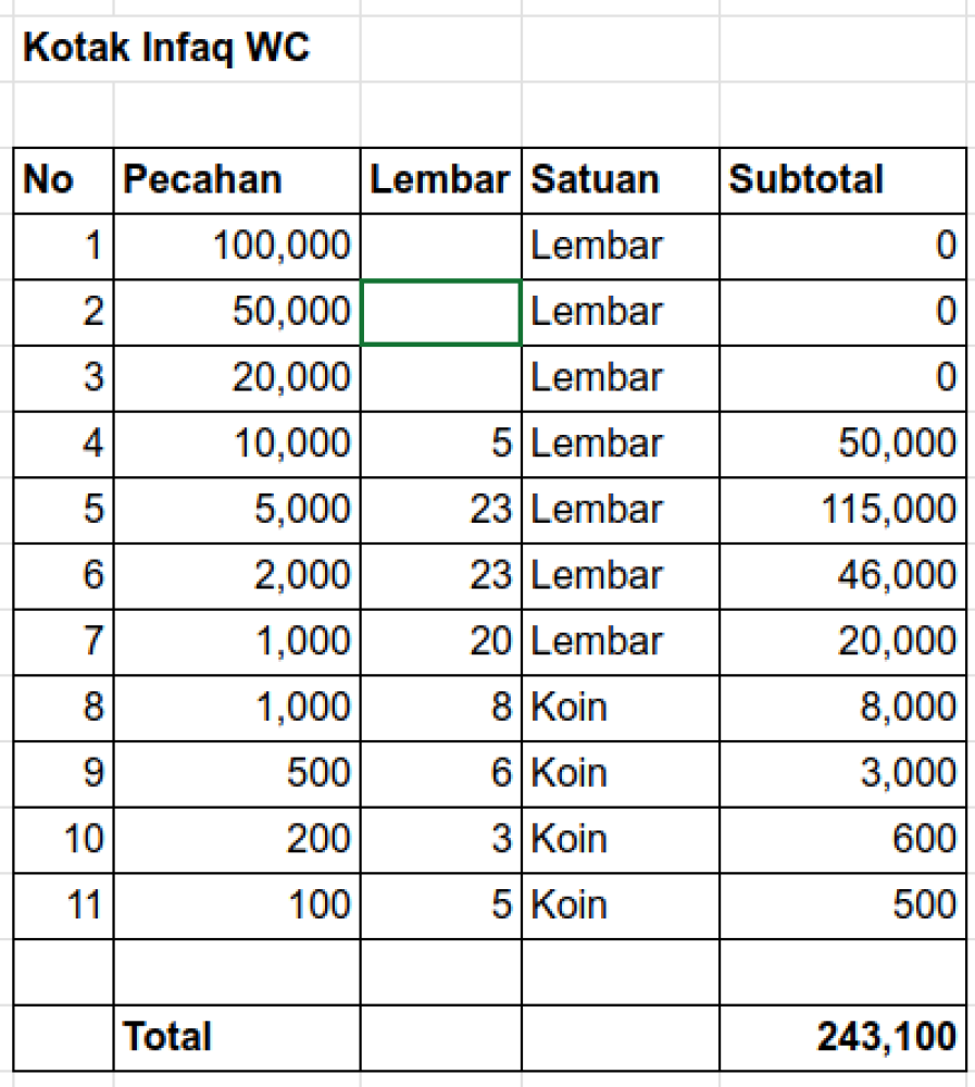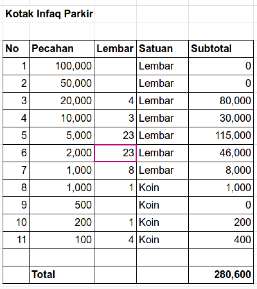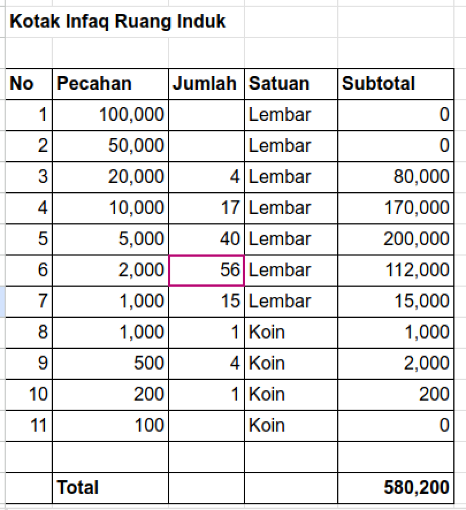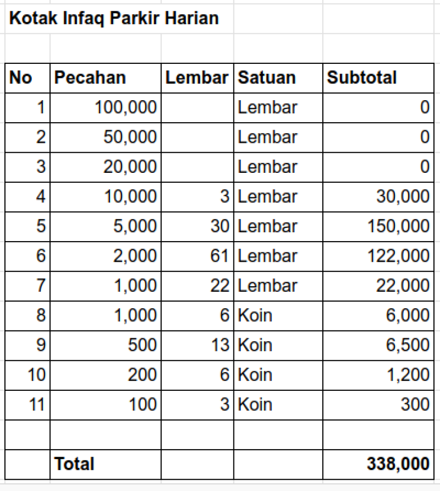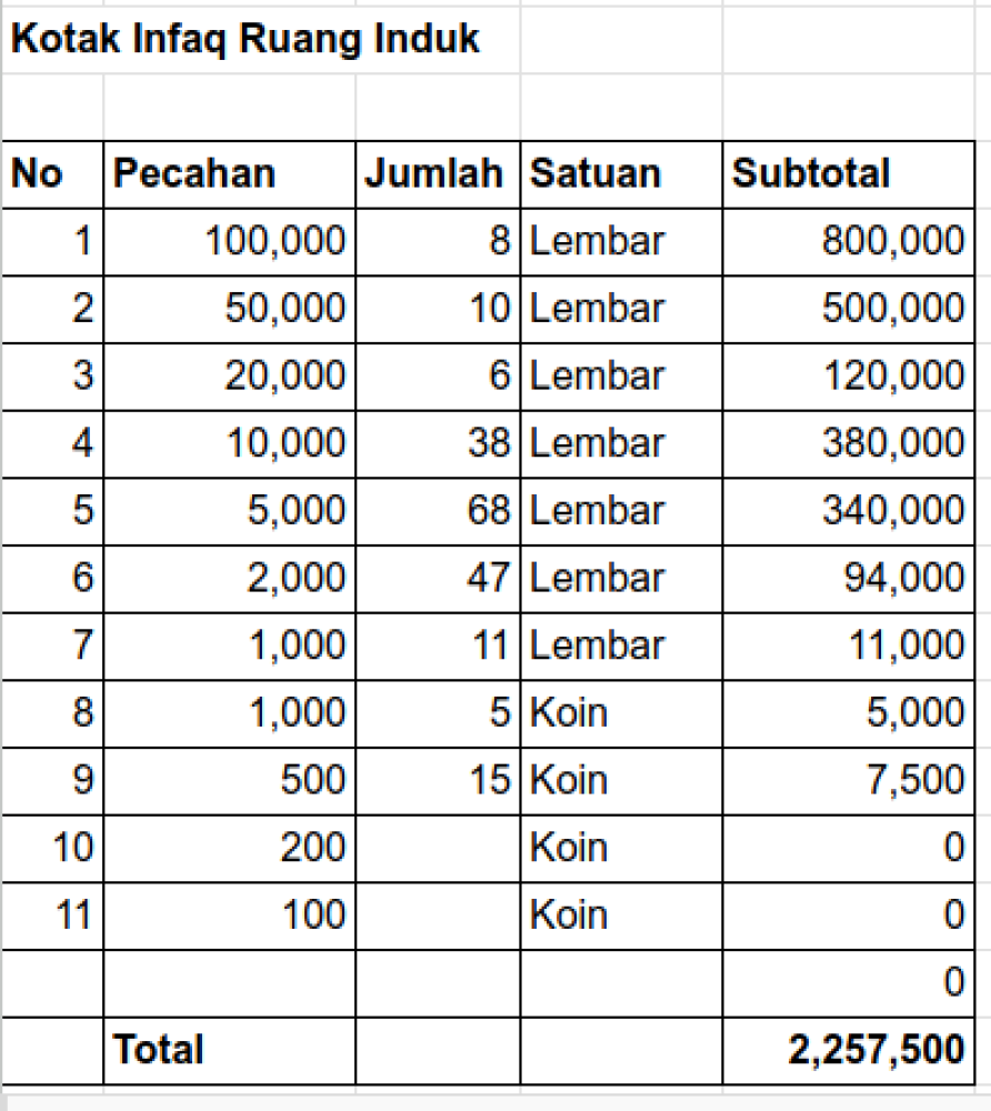 Kotak Infaq Hari Jumat (Ruang Induk dan Parkir)