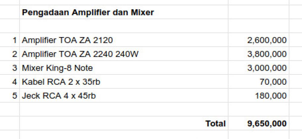 Infaq dari Hamba Allah untuk upgrade audio masjid (via H. Udin)