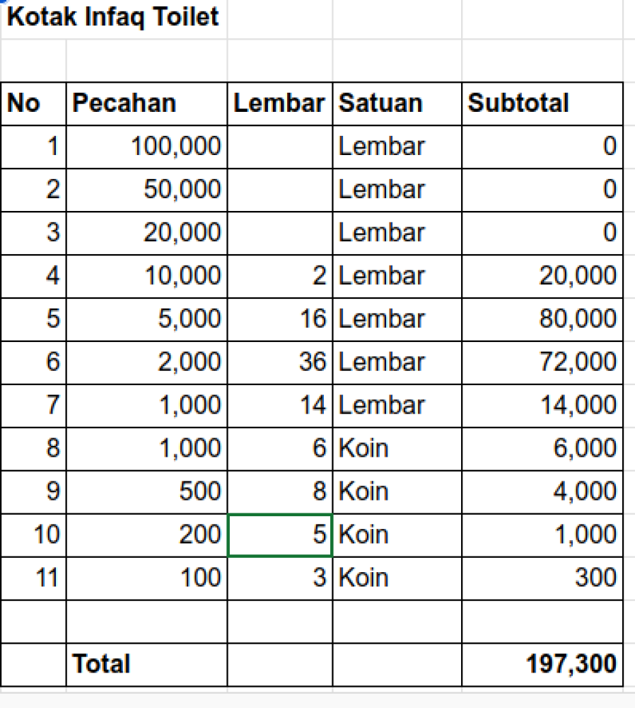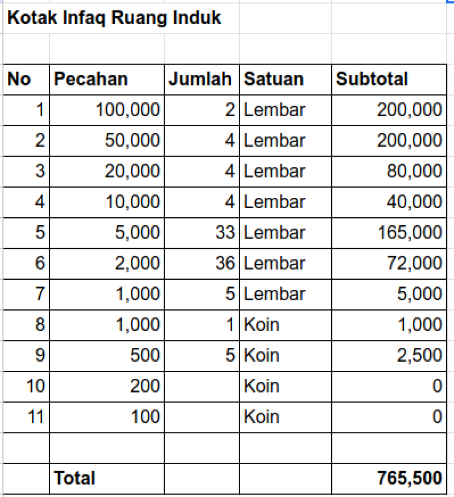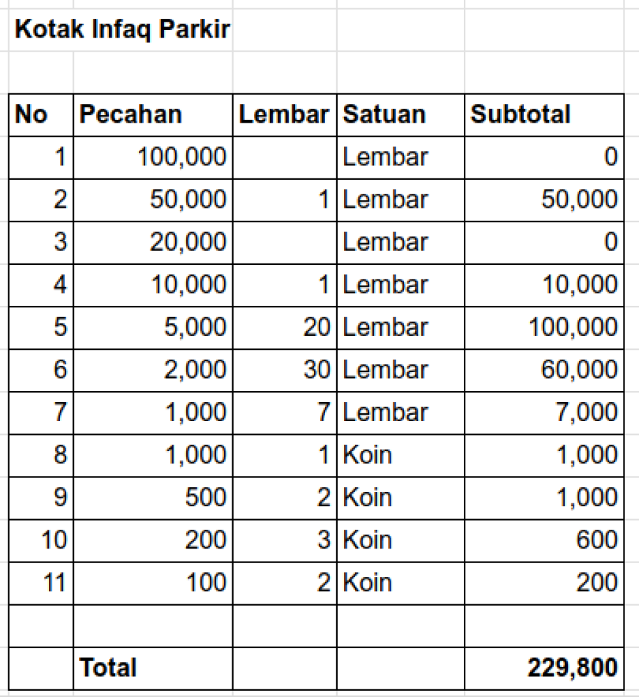 Kotak Infaq Hari Jumat (Ruang Induk dan Parkir)