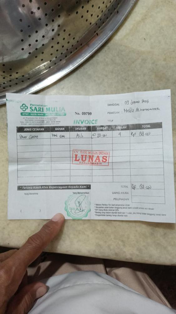 Konsumsi kegiatan pemasangan terpal teras samping kanan masjid