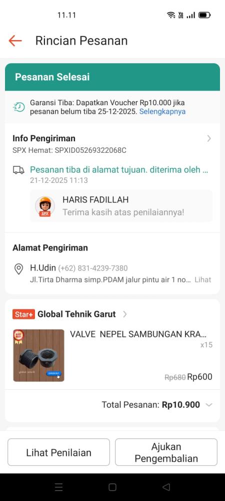 Beli Sambungan Kran 15 Biji (tgl 21 Des 2025)