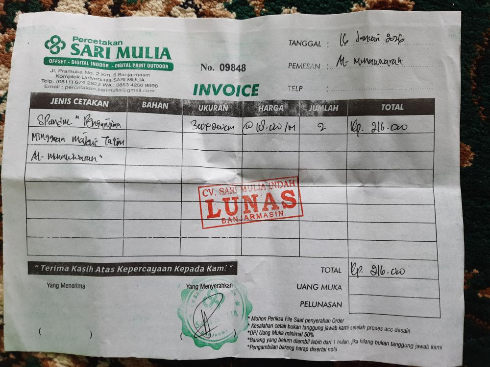 Konsumsi kegiatan pasang stavolt, saklar 2 TV lantai atas, dan spanduk