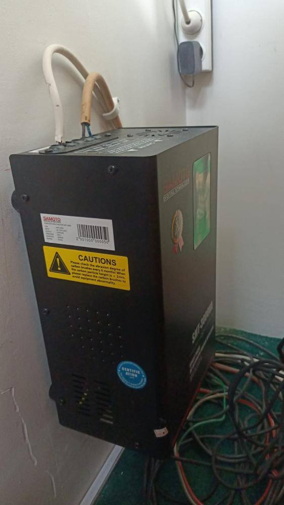 Upah iyar untuk pasang stavolt, saklar 2 TV lantai atas, dan spanduk