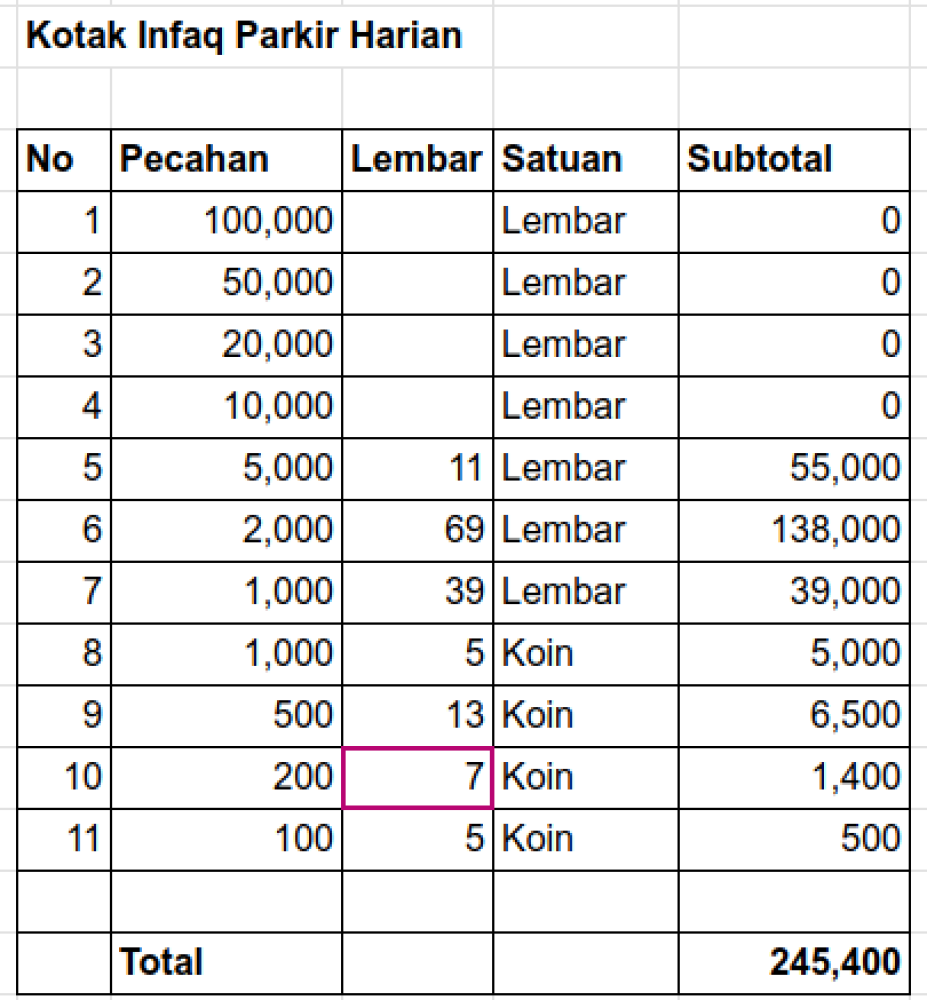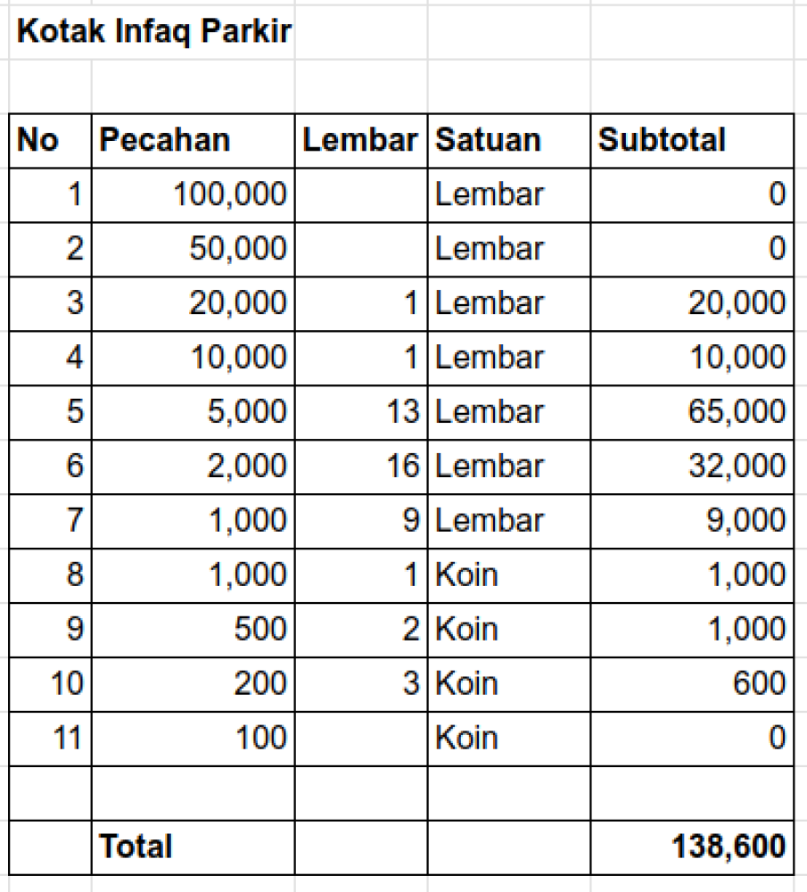 Kotak Infaq Parkir Harian
