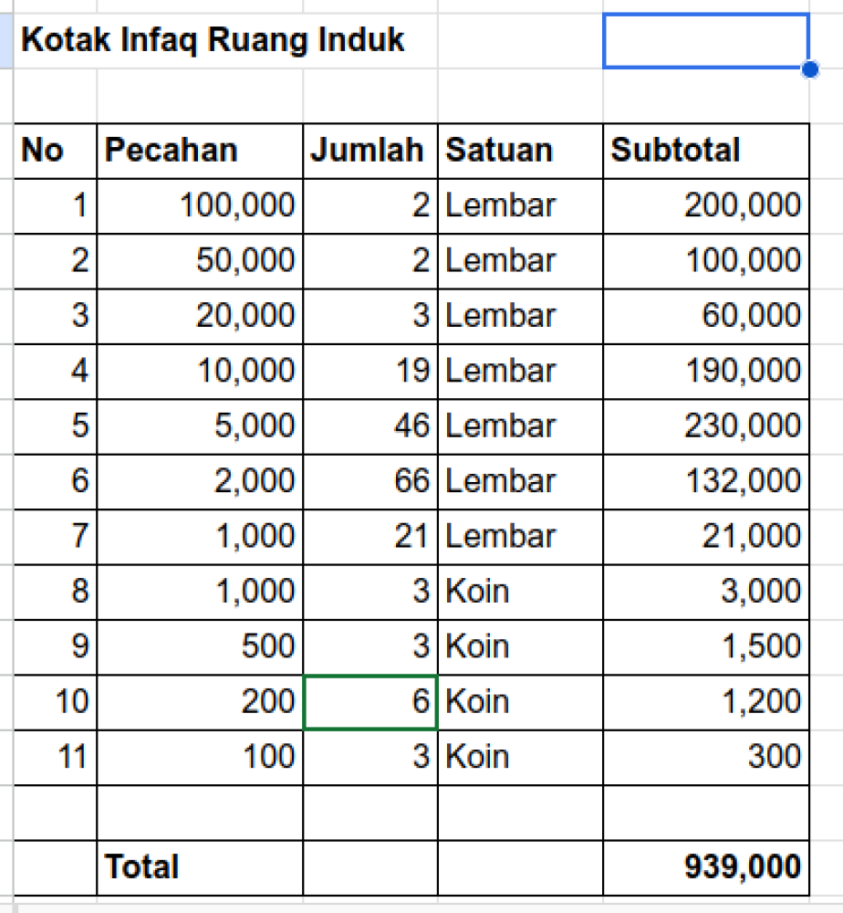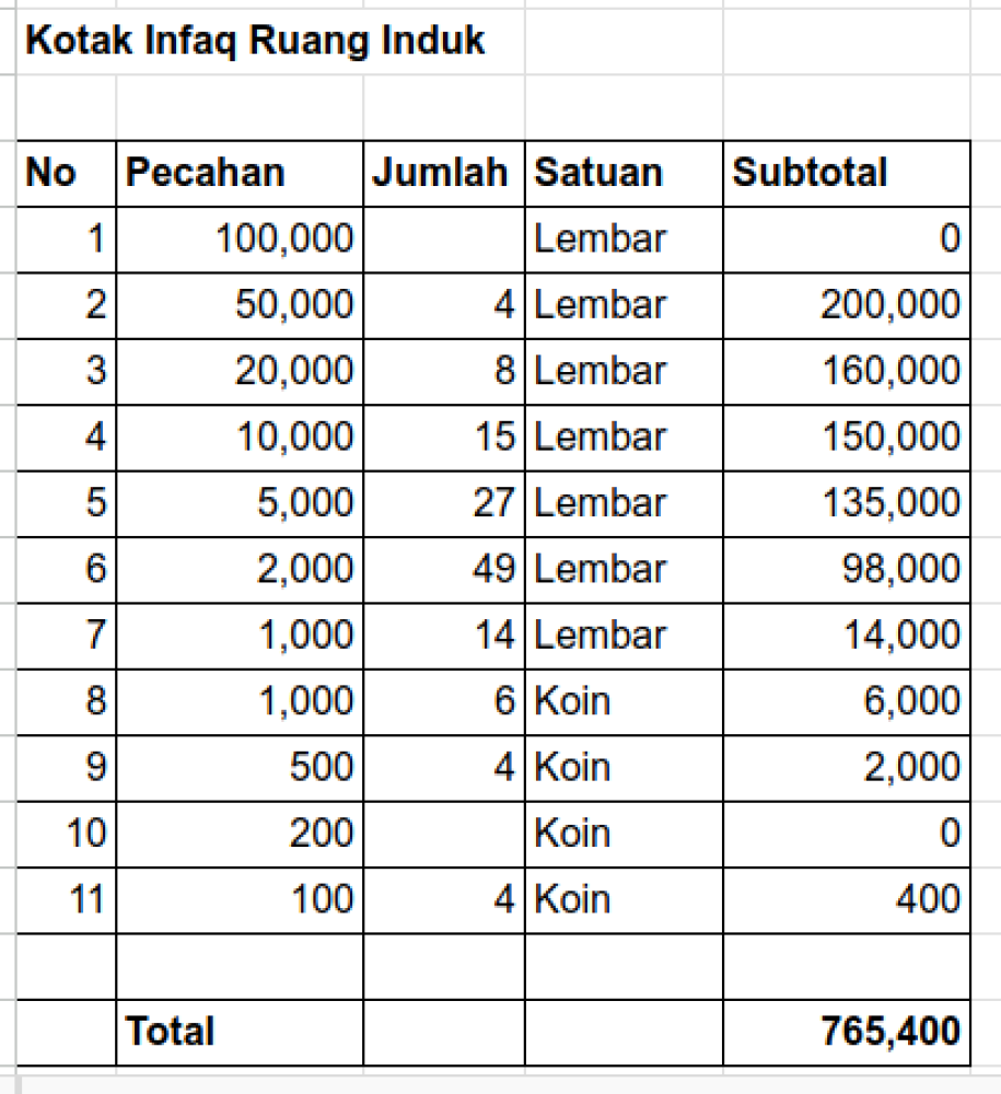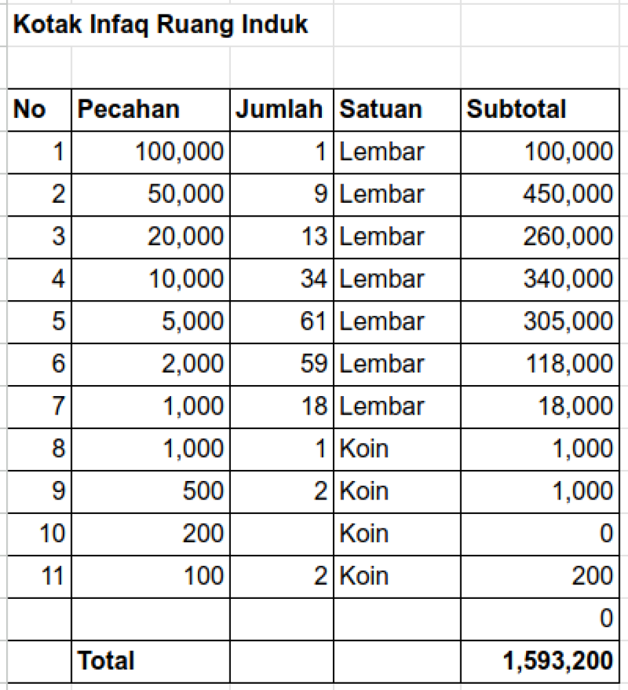 Kotak Infaq Hari Jumat (Ruang Induk dan Parkir)