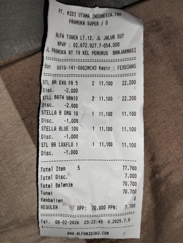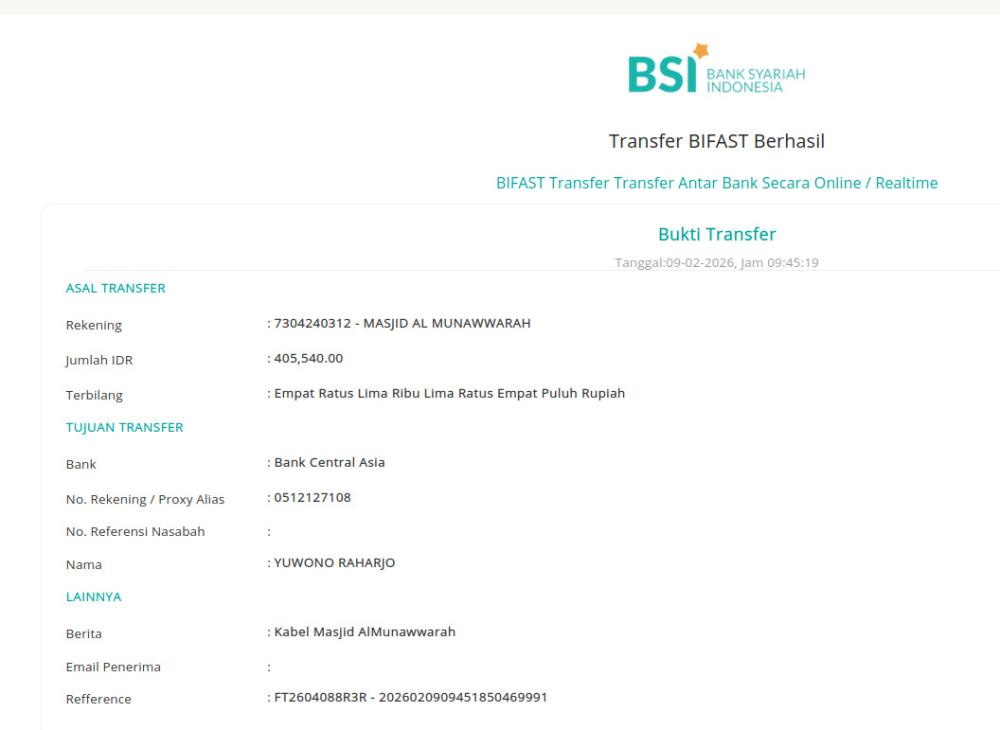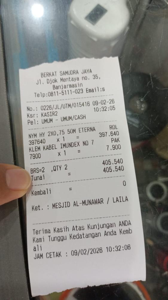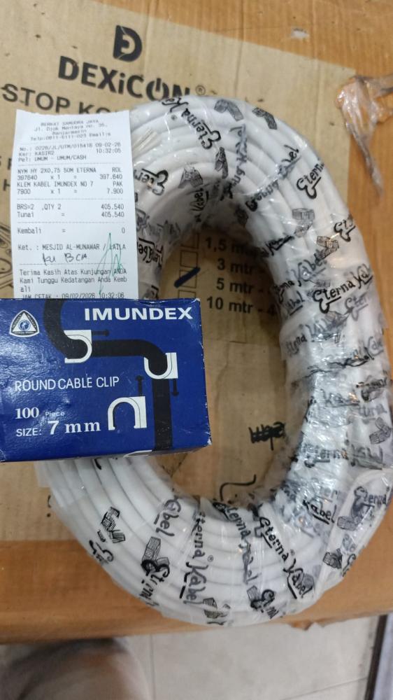Biaya transfer antar bank pembelian 1 roll kabel (BCA an Yuwono Raharjo)