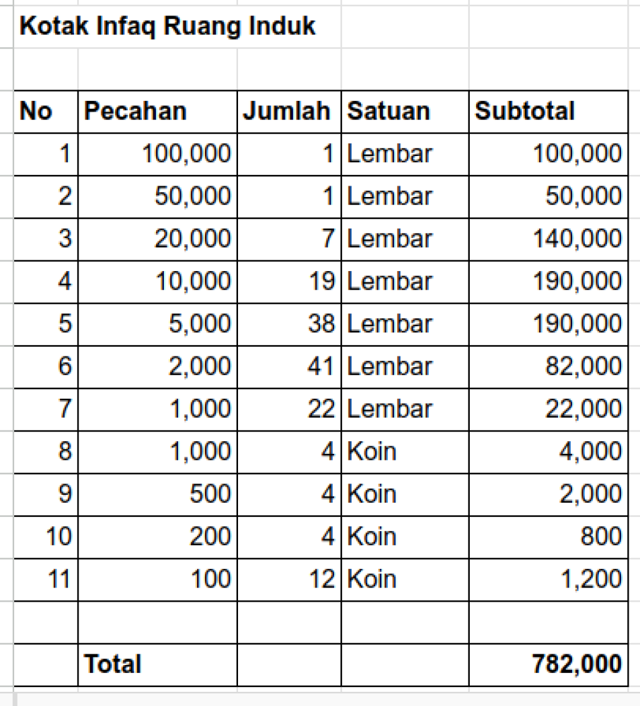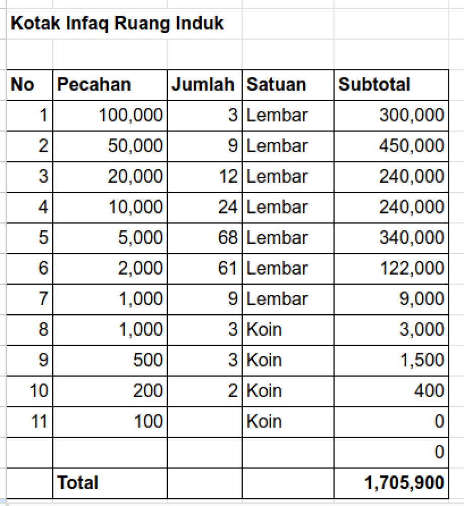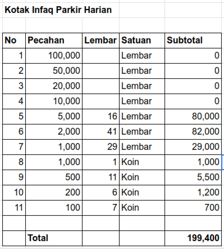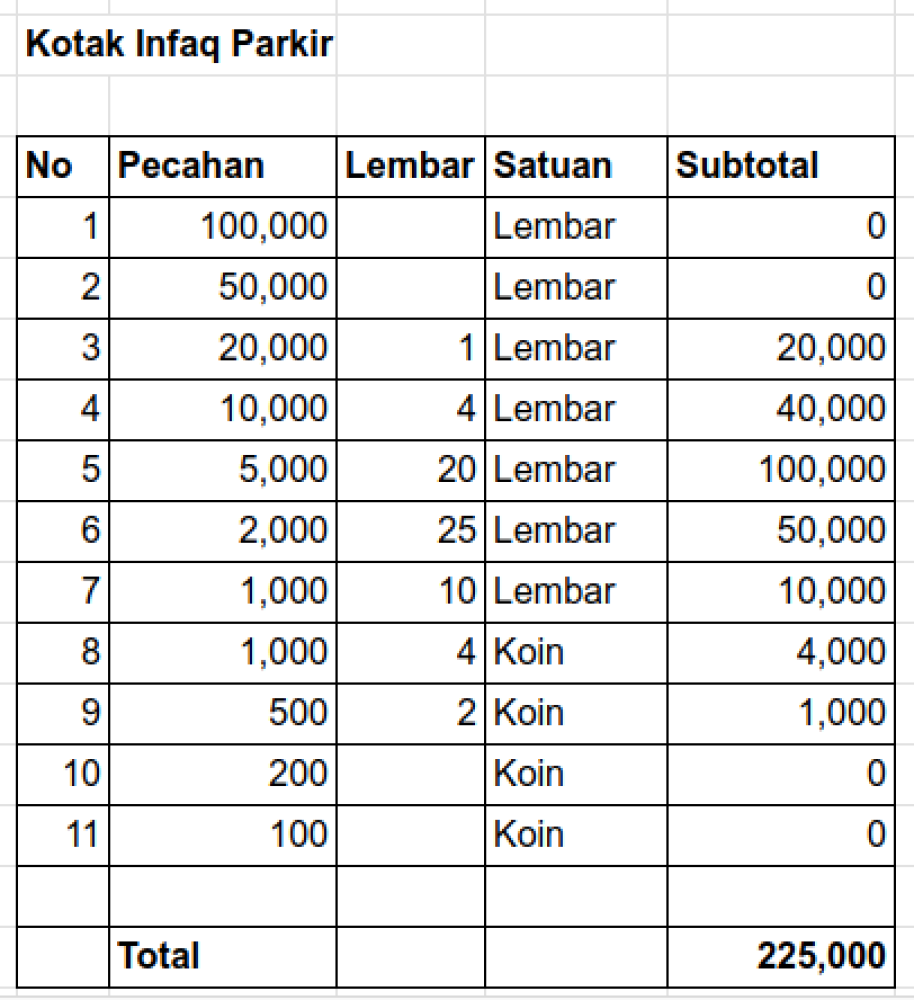 Kotak Infaq Hari Jumat (Ruang Induk dan Parkir)