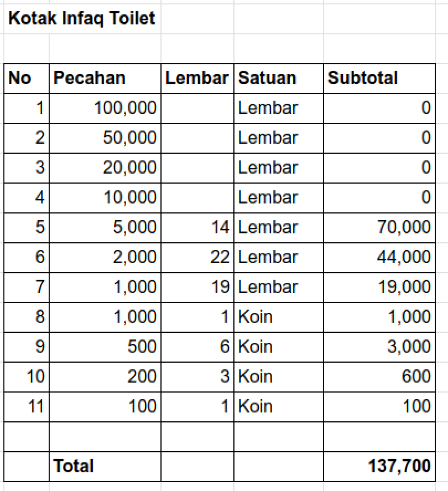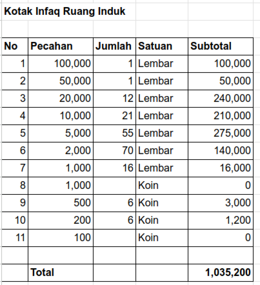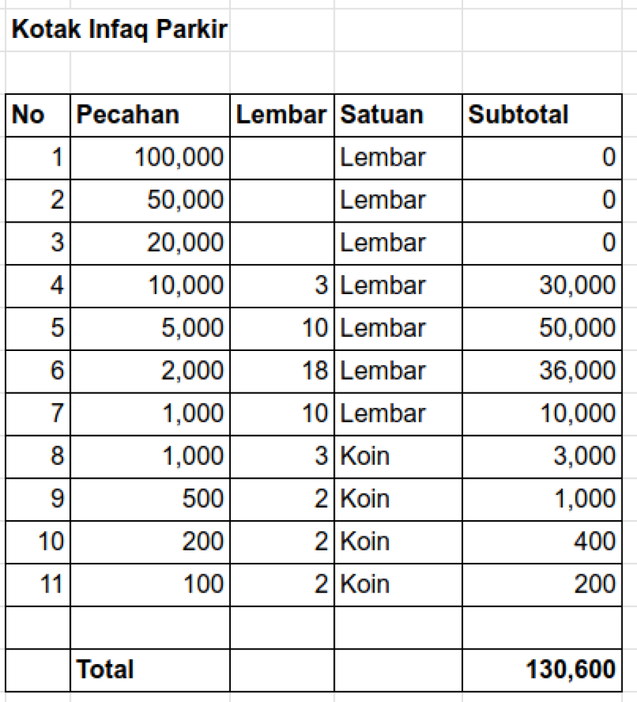 Kotak Infaq Hari Jumat (Ruang Induk dan Parkir)