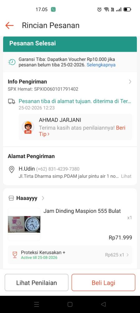 Infaq donatur untuk pembayaran PDAM masjid bulan Februari 2026