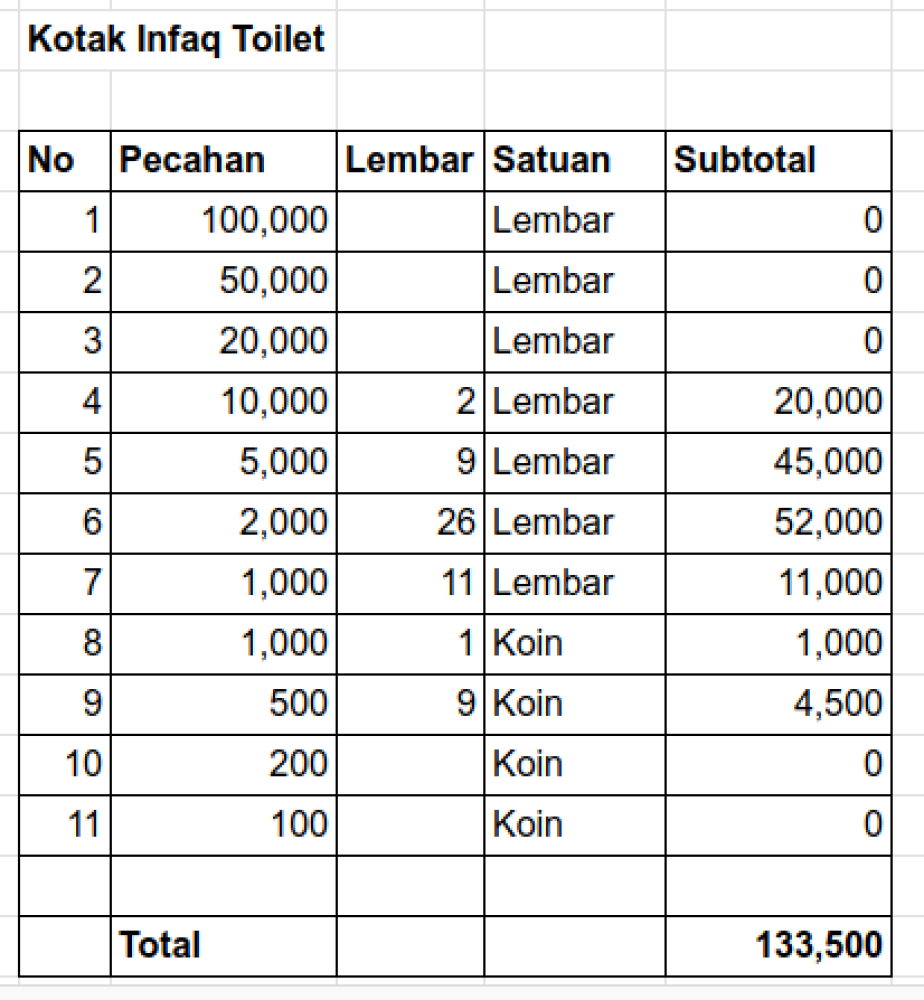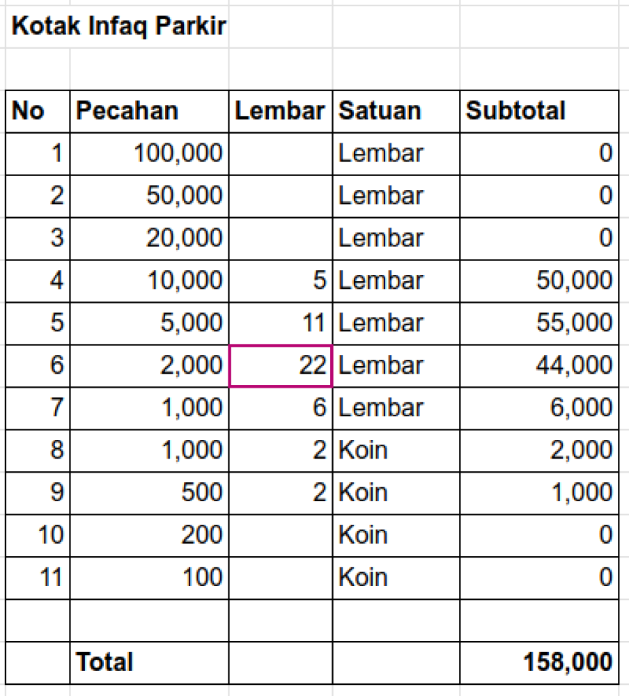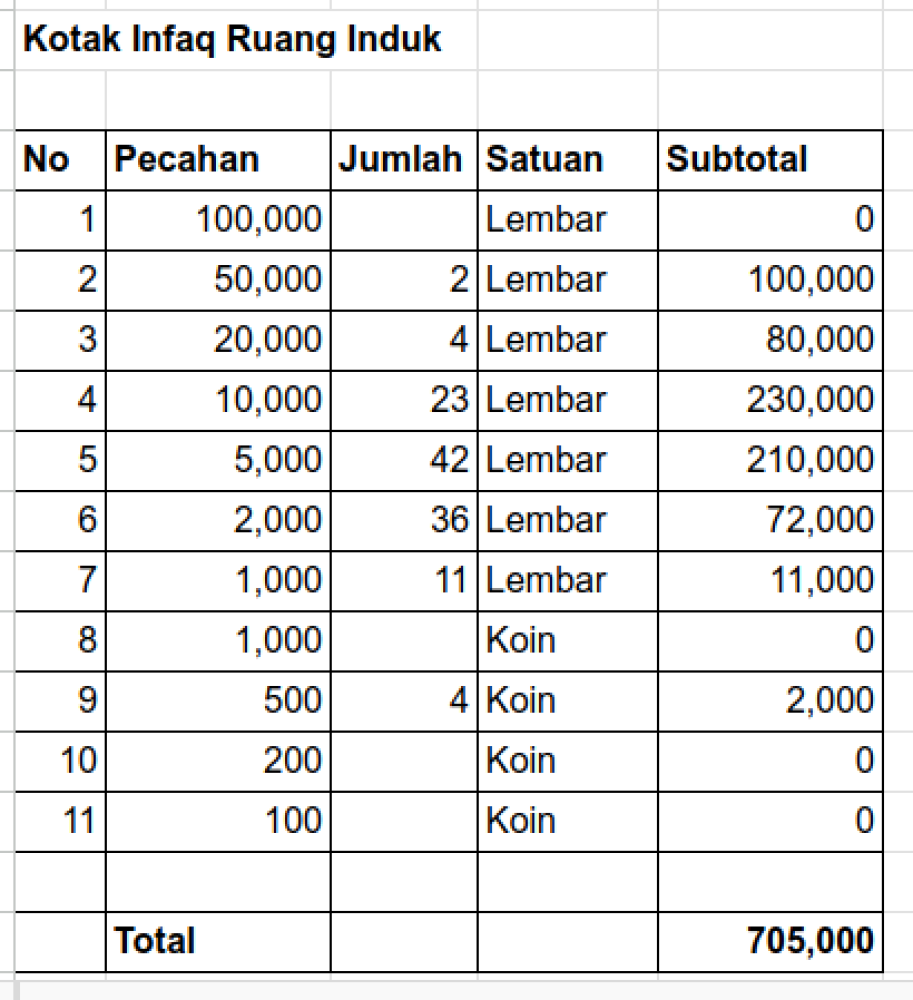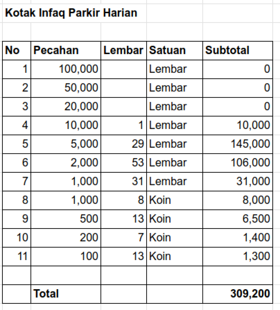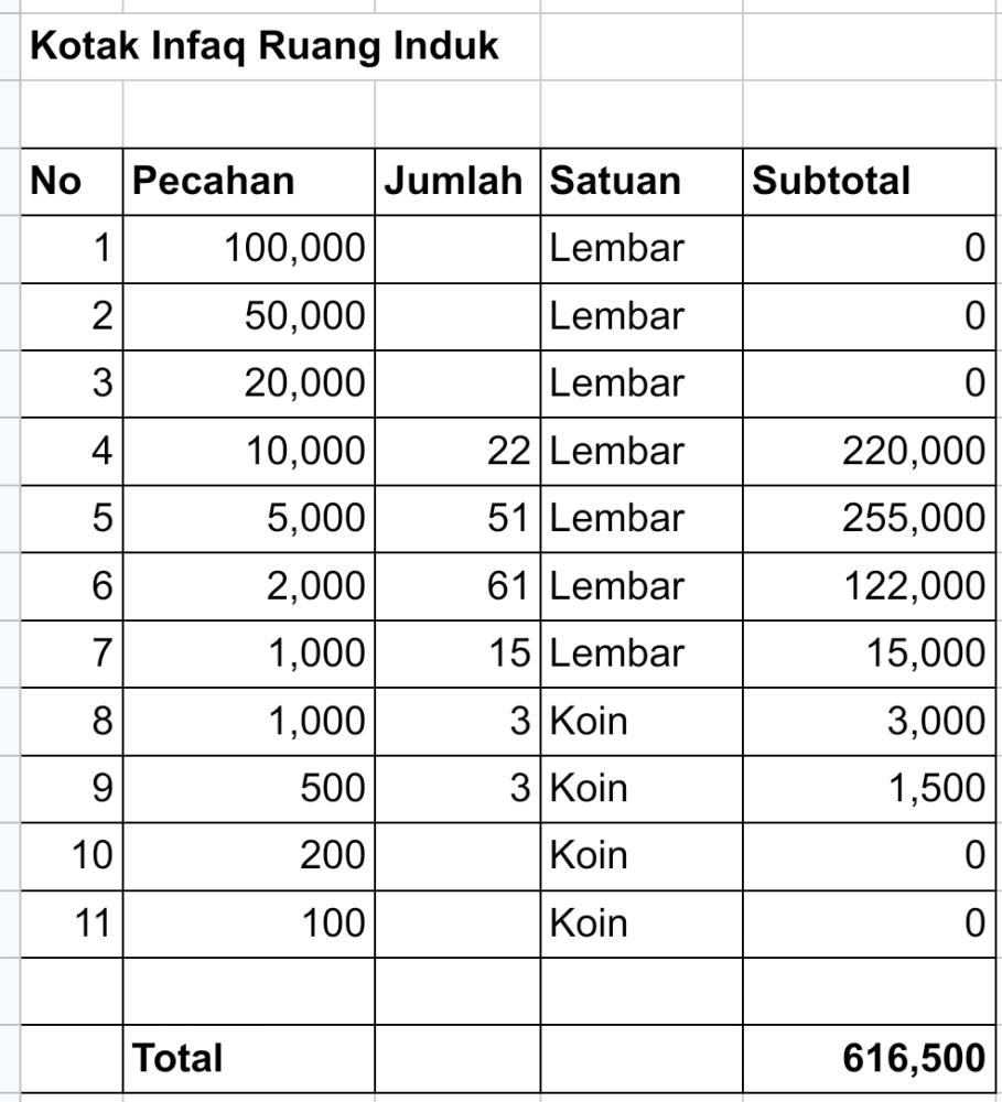 Kotak Infaq Hari Jumat (Ruang Induk dan Parkir)